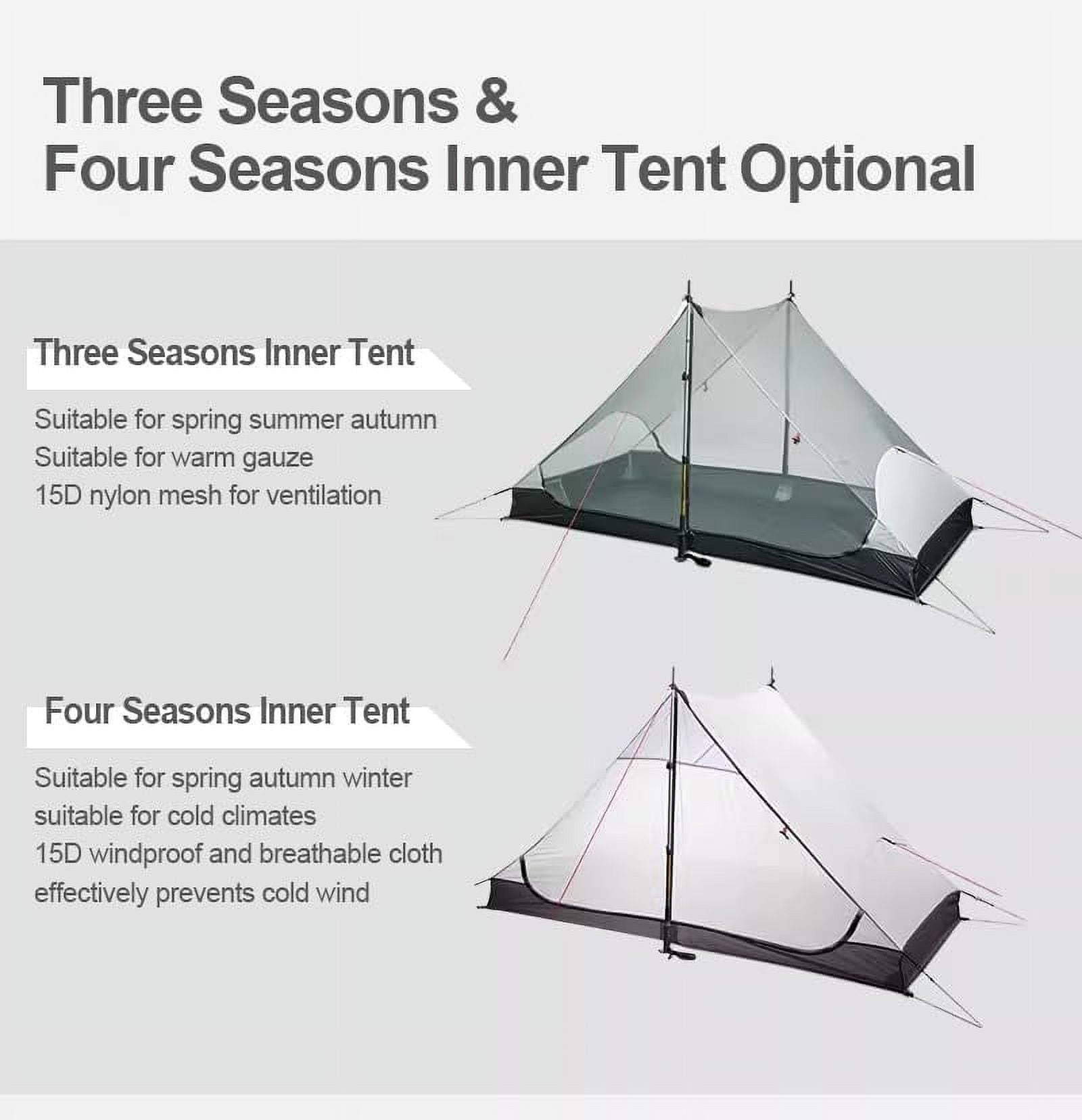 • 🎪【HOW TO CHOOSE BETWEEN 3-SEASON TENT AND 4-SEASON TENT】The 3-season tent is made of thin and breathable nylon fabric. So,it more suitable for use in hot weather and can better handle condensation. 4-season tent is made of thick and high-density nylon fabric and provides more protection from the wind. Therefore, 4-season tents are more suitable for cold weather.The 3-season tents should be used in spring, summer and autumn, while 4-season tents are recommended for winter.