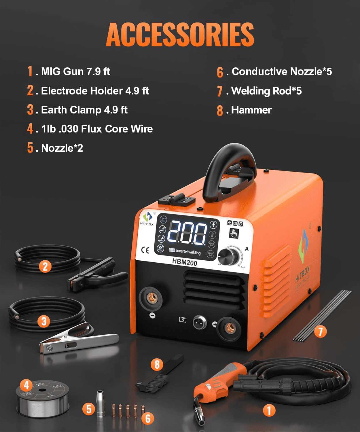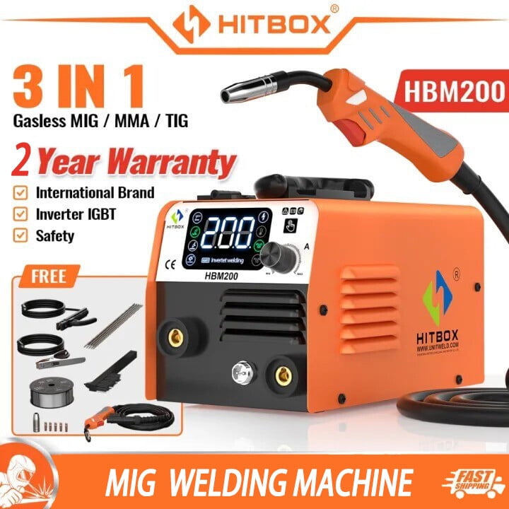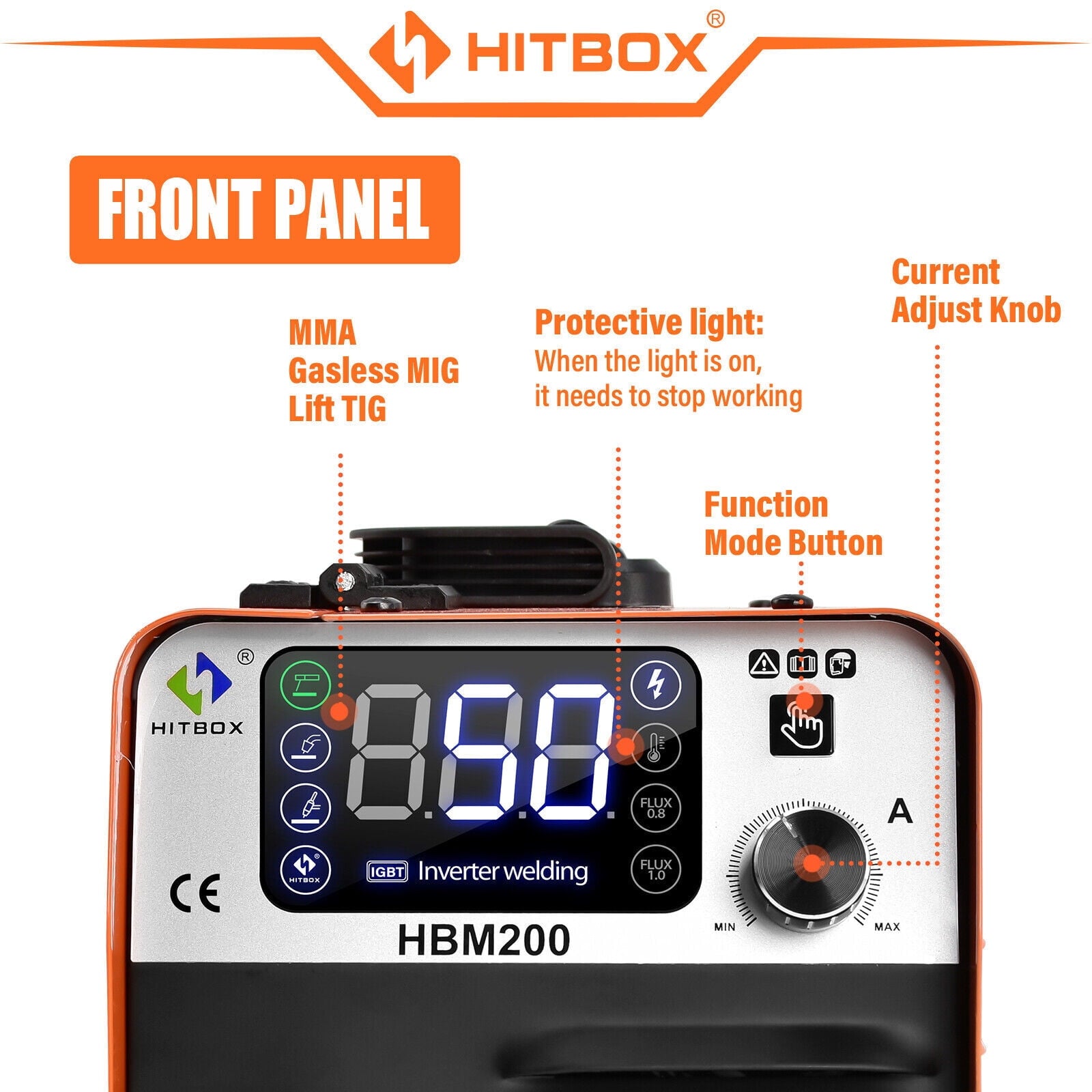 HITBOX 200A 110V 220V Mini MIG Welder Flux Core Welder MIG ARC 3 in 1 Compact MIG Welding Machine Inverter Gasless Welding Machine
