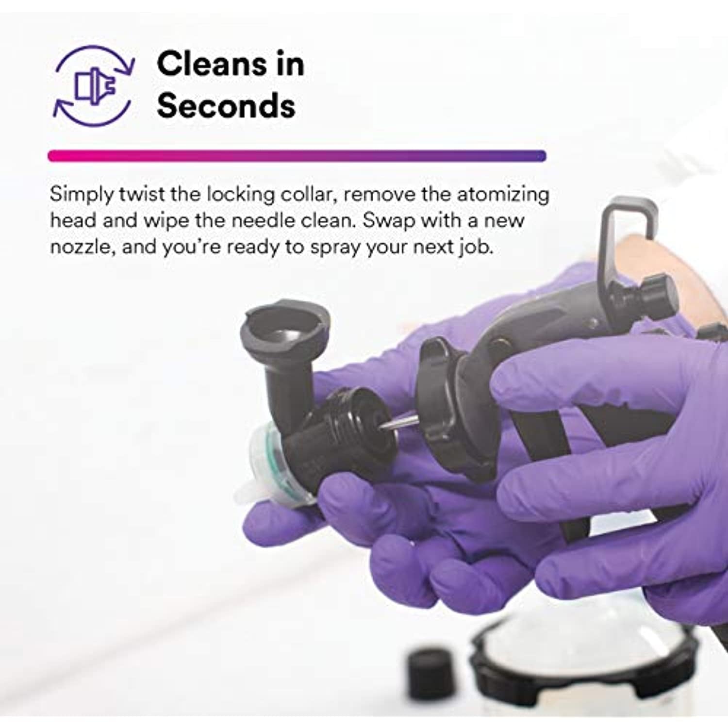 - REPLACEABLE NOZZLES: 5 each of quick-change replaceable atomizing heads in size 1.2, 1.3, 1.4; its like getting a brand-new spray gun with every new nozzle