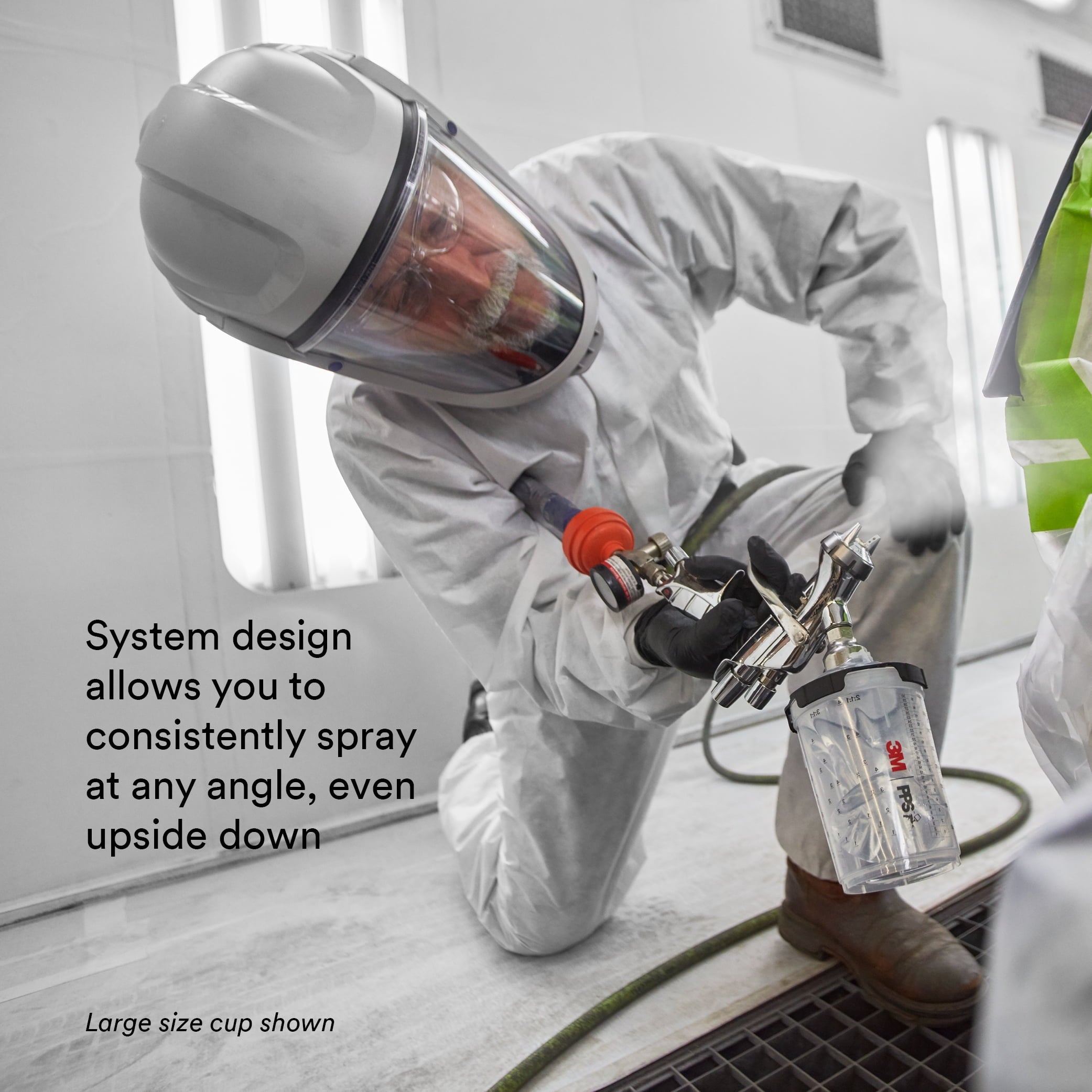 3M PPS Series 2.0 Spray Cup System is our next generation, highest performing disposable spray cup system for mixing/measuring, filtering, spraying in any direction (360° spray rotation) and protecting coatings not in use. Each lid and liner kit contains 50 disposable lids with integrated collars and full diameter filters, 50 disposable liners, 1 reusable hard cup and 32 sealing plugs.