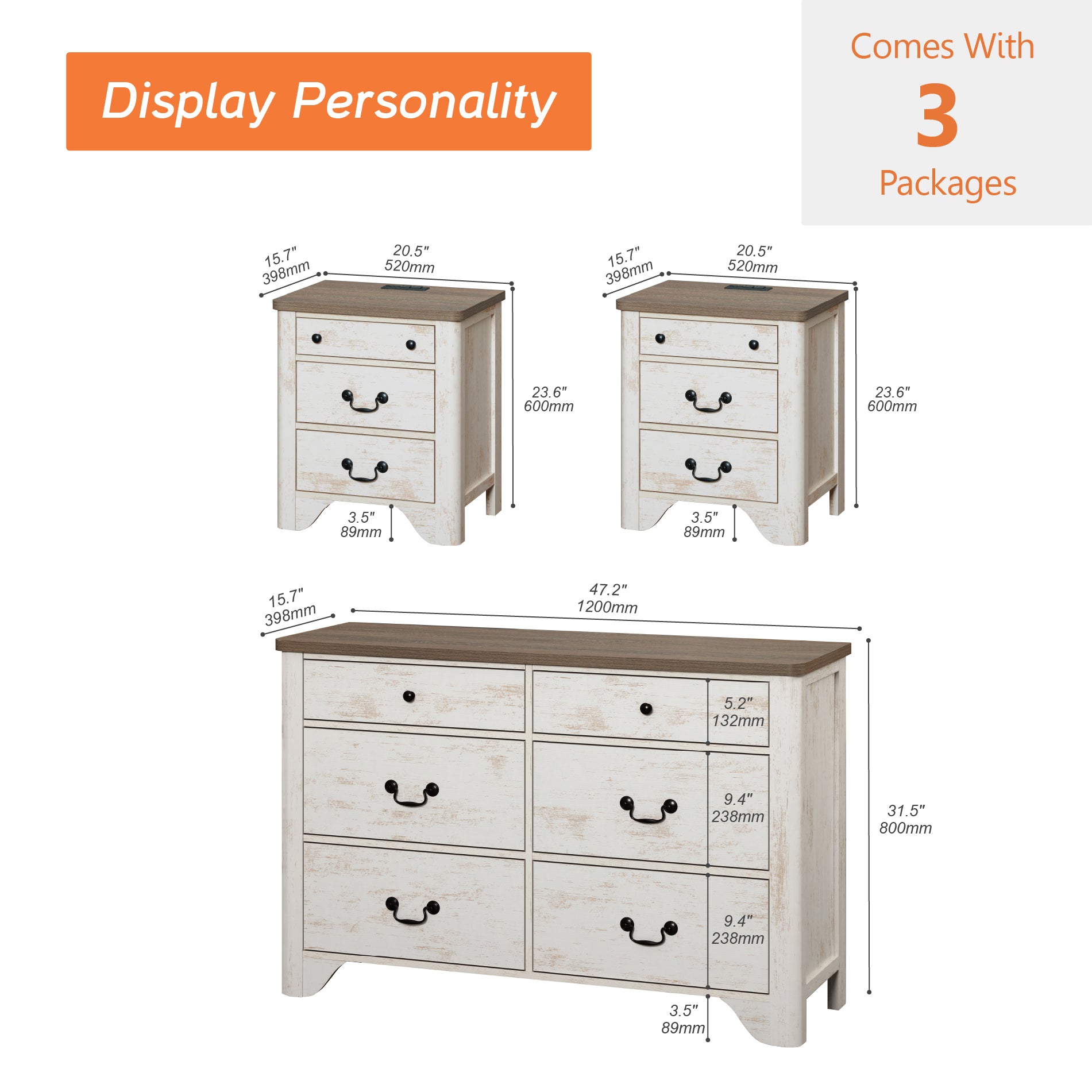 - Dresser Size: 15.7″L x 47.2″W x 31.5 “H