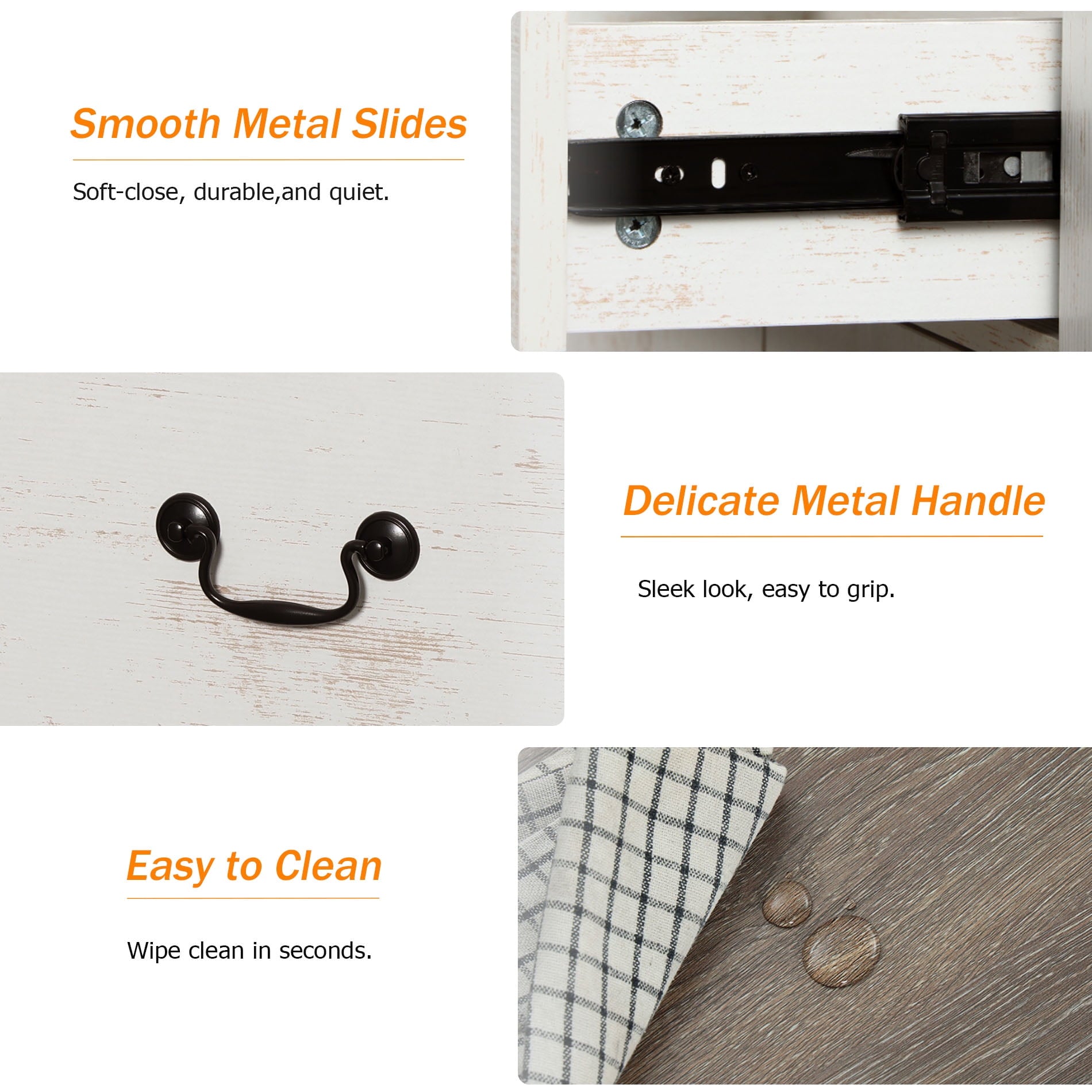 - Durable and Smooth Functionality:Constructed from quality engineered wood with metal drawer glides and handles, this set ensures long-lasting durability and smooth daily use.