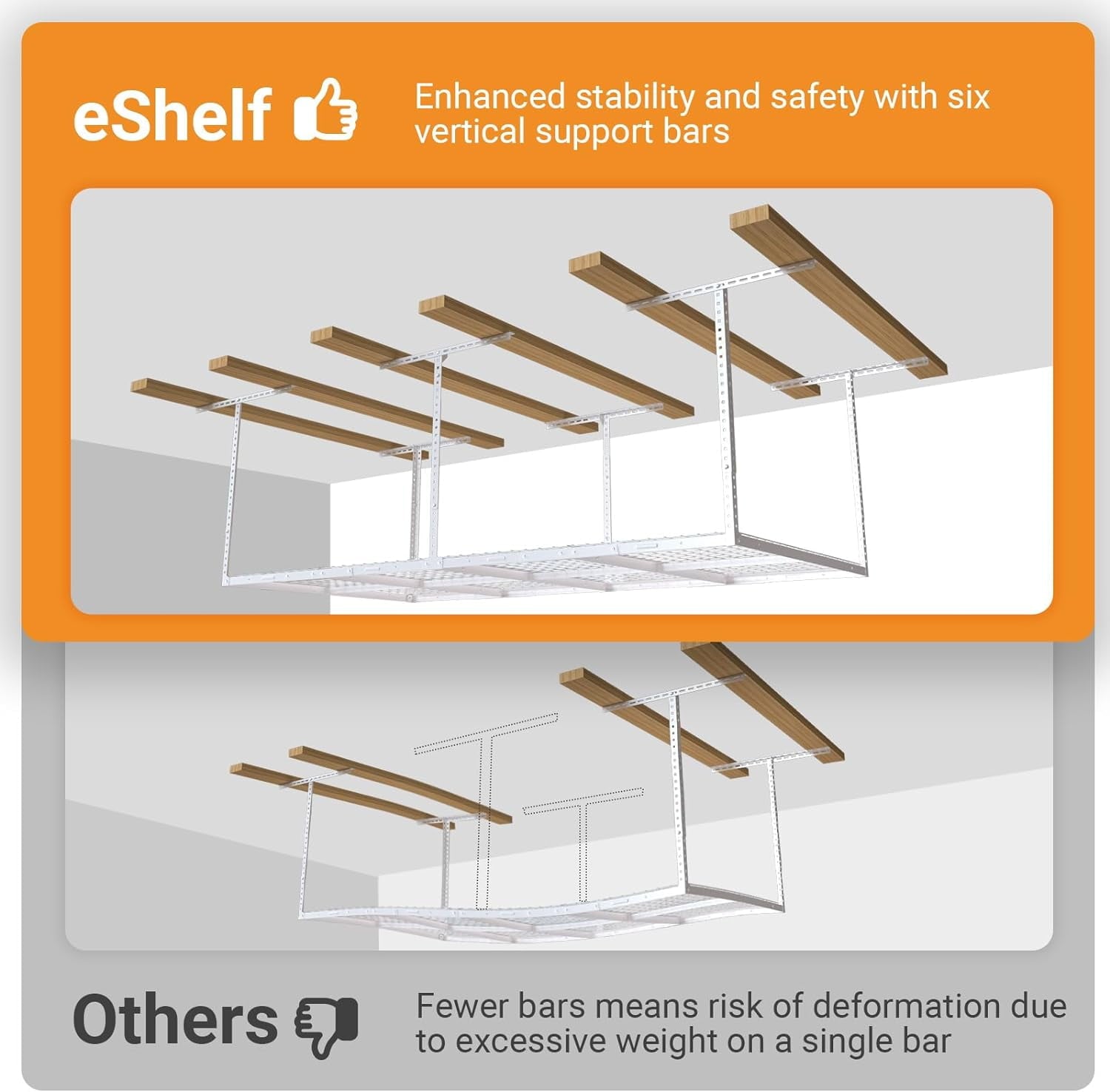 - Clear Floor Space: The overhead garage storage rack utilizes the unused ceiling space, maximizing valuable floor space in the garage. It allows for vertical storage, maximizing storage capacity without occupying the ground area.