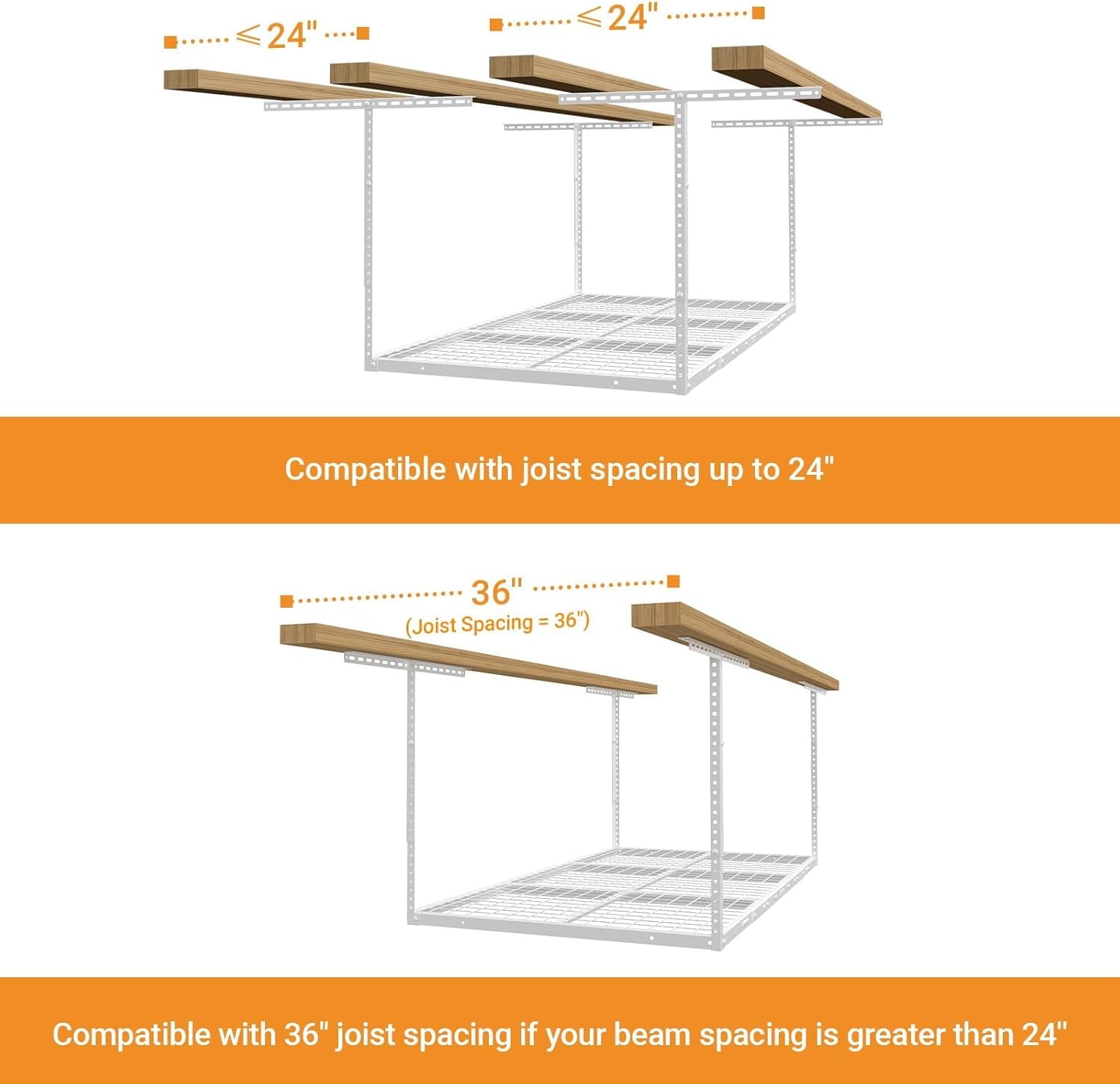 - Large Capacity: The 3x6ft overhead garage storage rack combines a weight-bearing capacity of 450 pounds, which provides a reliable storage solution.