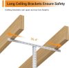 - Compatibility: It’s compatible with joist spacing of ≤24 inches. If the ceiling joist spacing is greater than 24 inches, it is only compatible with 36 inches of ceiling joist spacing. Also it’s compatible with ceiling angles under 15 degrees.