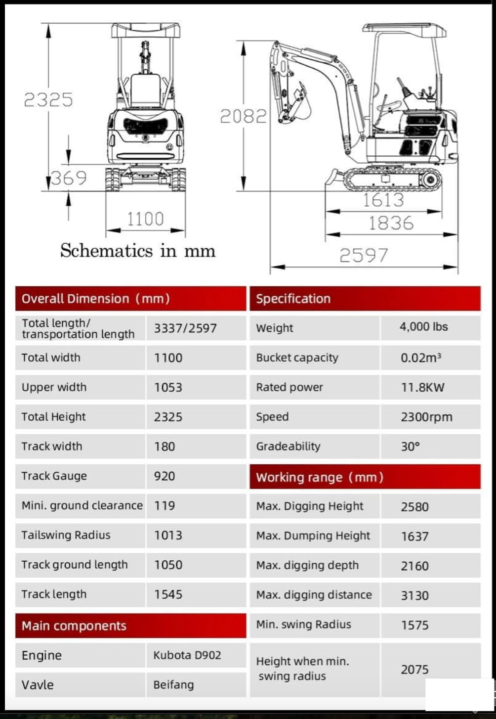 - User-Friendly Design: The micro digger is extremely easy to maneuver even by first-time users, featuring a 450mm wide bucket and platform ground clearance that allow easy operation for all excavation, drilling, or bull-dozing jobs. Easy maneuverability with swing boom.