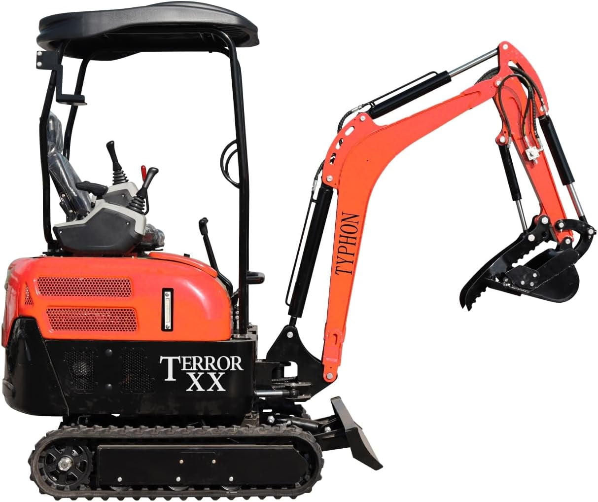 - What’s Included: The TYPHON TERROR XX Lux mini excavator machine comes with 1 x standard digging excavator bucket, as well as 1 x tool box, 1 x canopy, and 1 x digital manual with all the instructions.