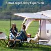 - Expandable Weatherproof FoyerAttached lobby extension creates 40% extra space for gear storage/cooking, shielded by reinforced 3000mm PU-coated fabric.
