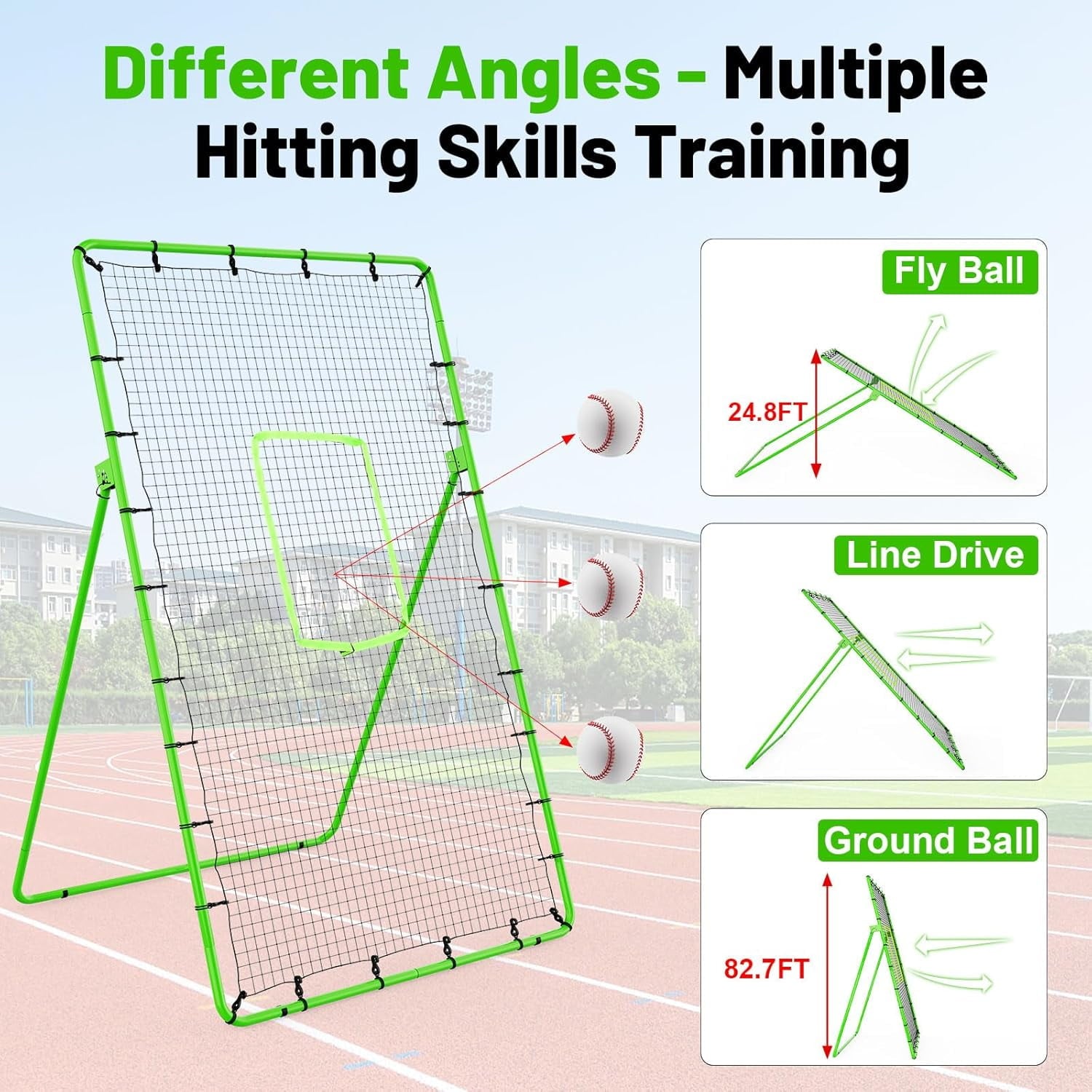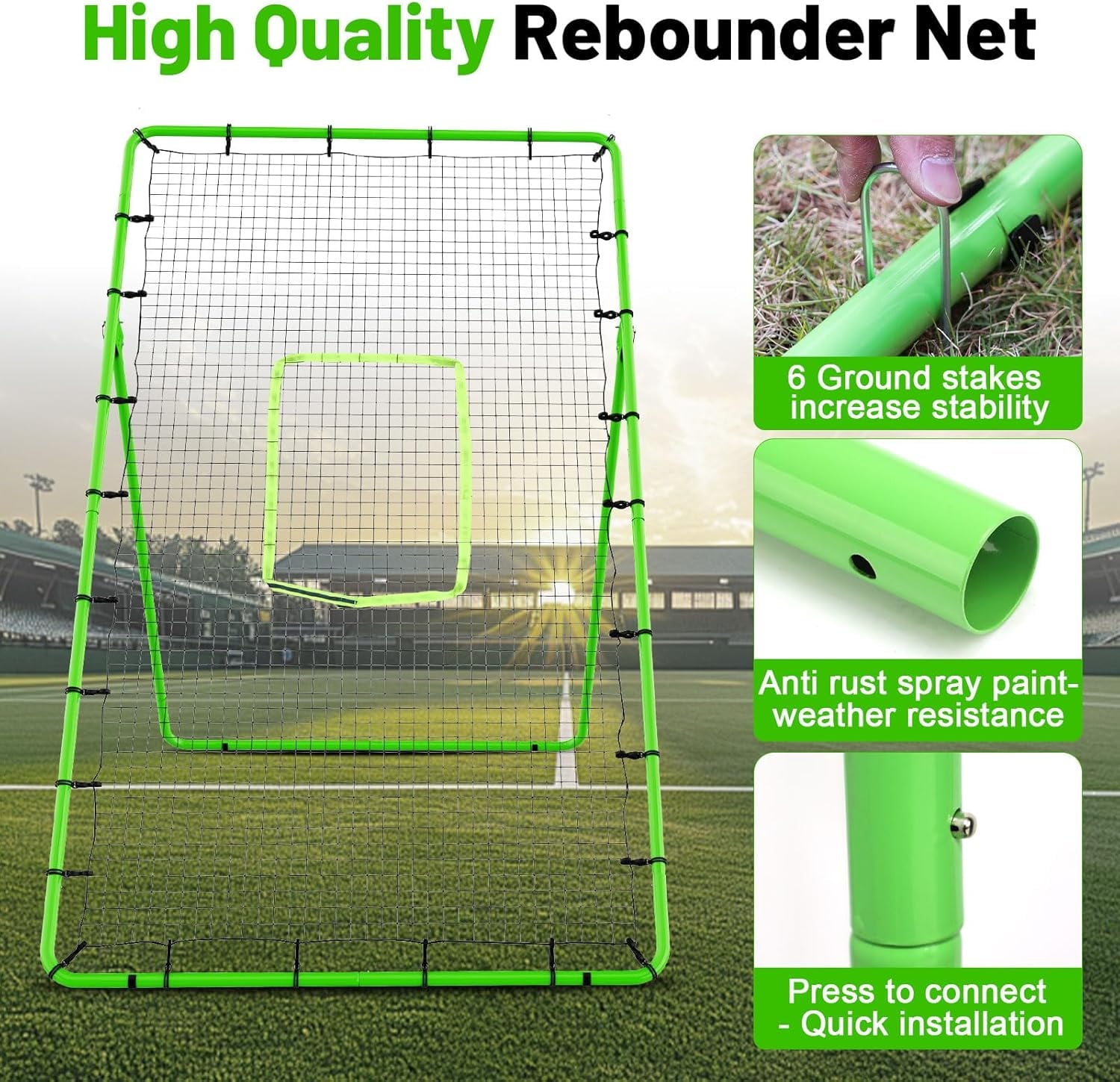 1.[High Quality Rebounder]:Our baseball rebounder net is made of 25mm thick iron pipes, which are sturdy, durable, and not easily broken; Our HOPE baseball net is more wear-resistant and less prone to tearing, as the mesh size is 1.75 in and it is made of 30 strands of mesh with knots.