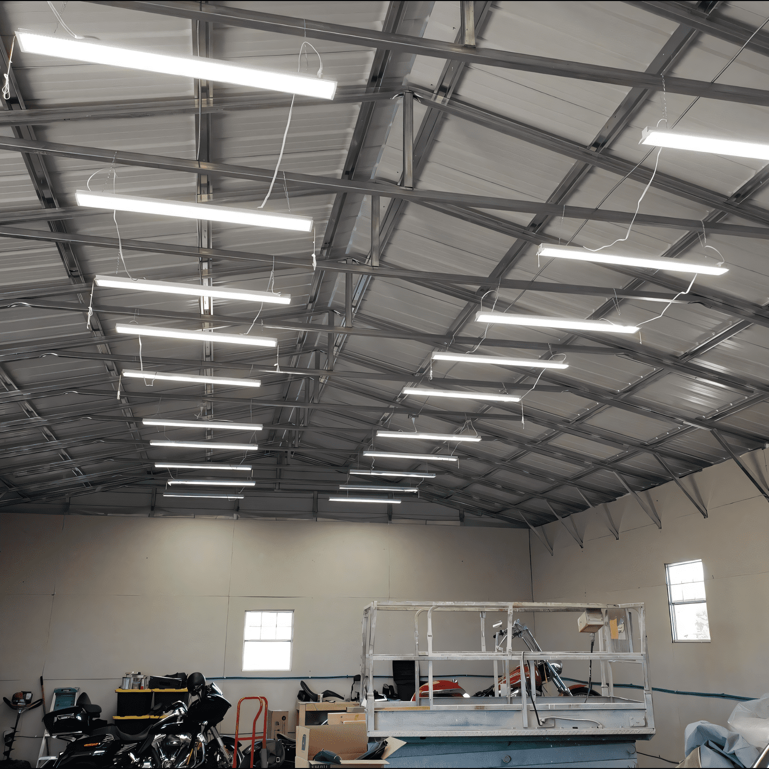 Each light comes with a 59-inch power cord featuring a 1-15P plug, allowing you to effortlessly connect up to four lights using just one power supply. Our product comes with all the necessary accessories, making it easy for you to choose between surface mounting or suspended mounting according to your requirements. This versatility makes it perfect for various settings such as garages, stores, fast-food restaurants, gyms, and more.
