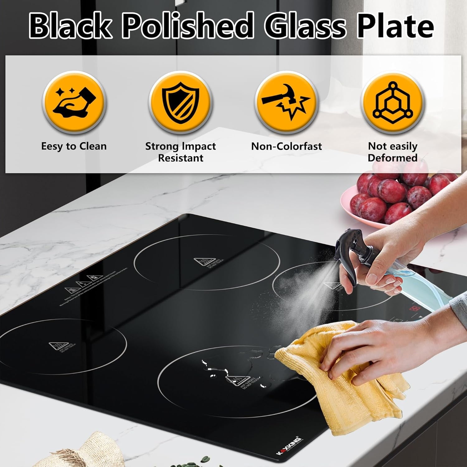 - Black Ceramic Glass Surface: 24 inch electric cooktop is designed with black crystal glass panels. The smooth glass surface is not only harder and more scratch-resistant but also easy to clean and maintain, enhancing both its appearance and functionality. When the surface of the electric cooktop gets stained, simply wipe it with a damp cloth; oil stains can be cleaned with soapy water.