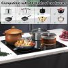 - Built-in Electric Cooktop With 9 Levels of Heat: The 4 burner electric cooktop features 9 heat settings, ranging from gentle melting to rapid heating. Simply touch the ‘+’ and ‘-‘ buttons on the control panel to adjust the firepower instantly. Whether you’re braising, frying, stewing, steaming, boiling, sautéing, or grilling, you can precisely control the heat using the panel.