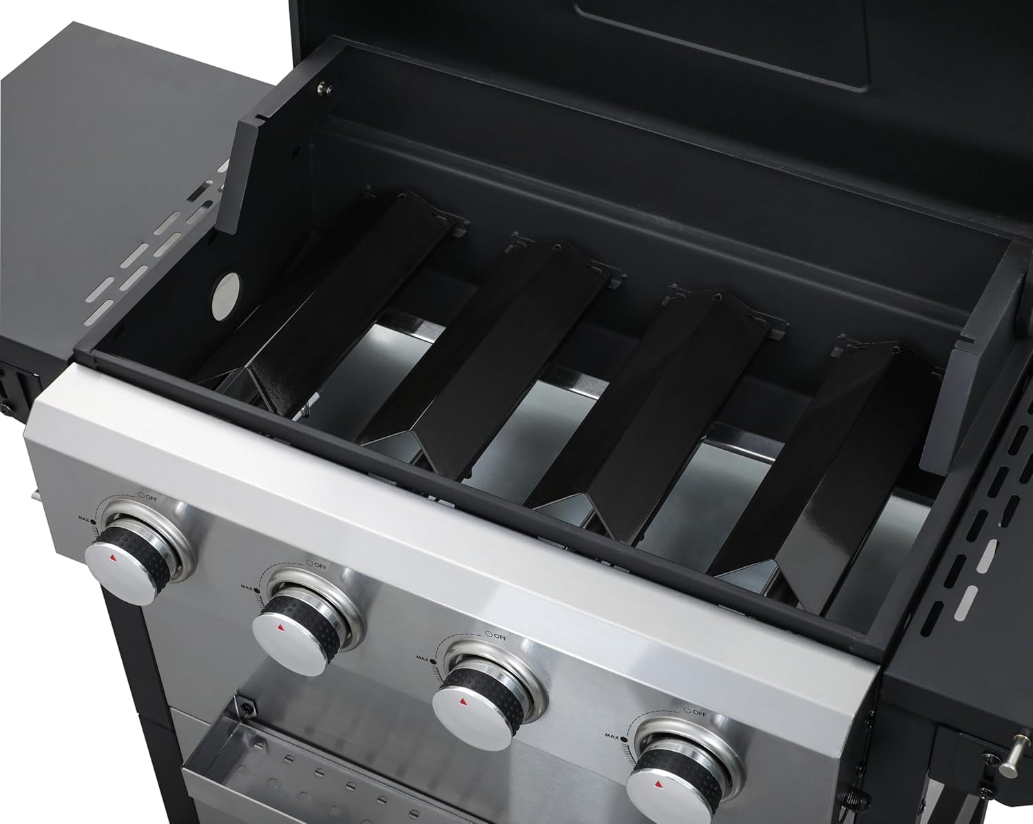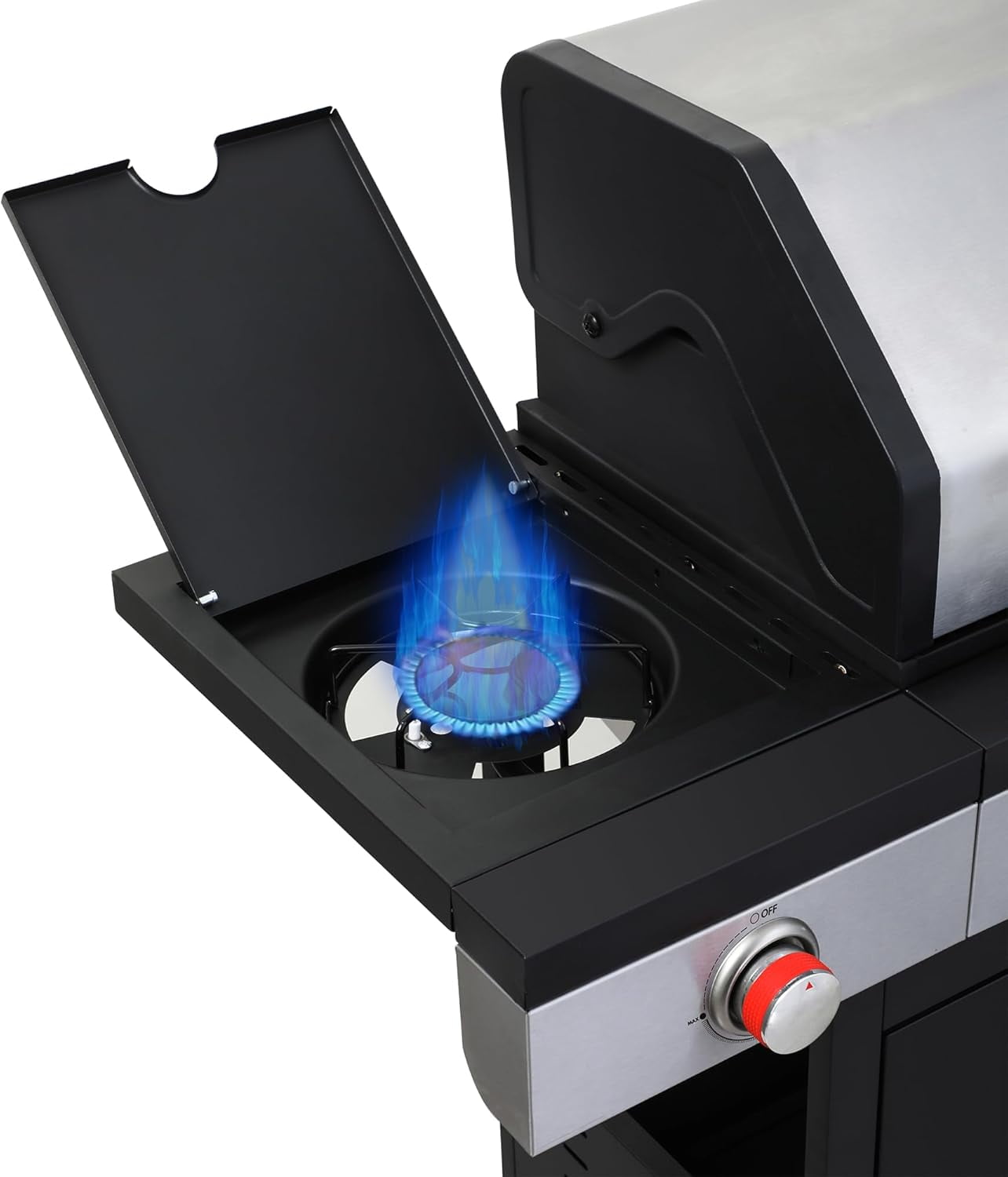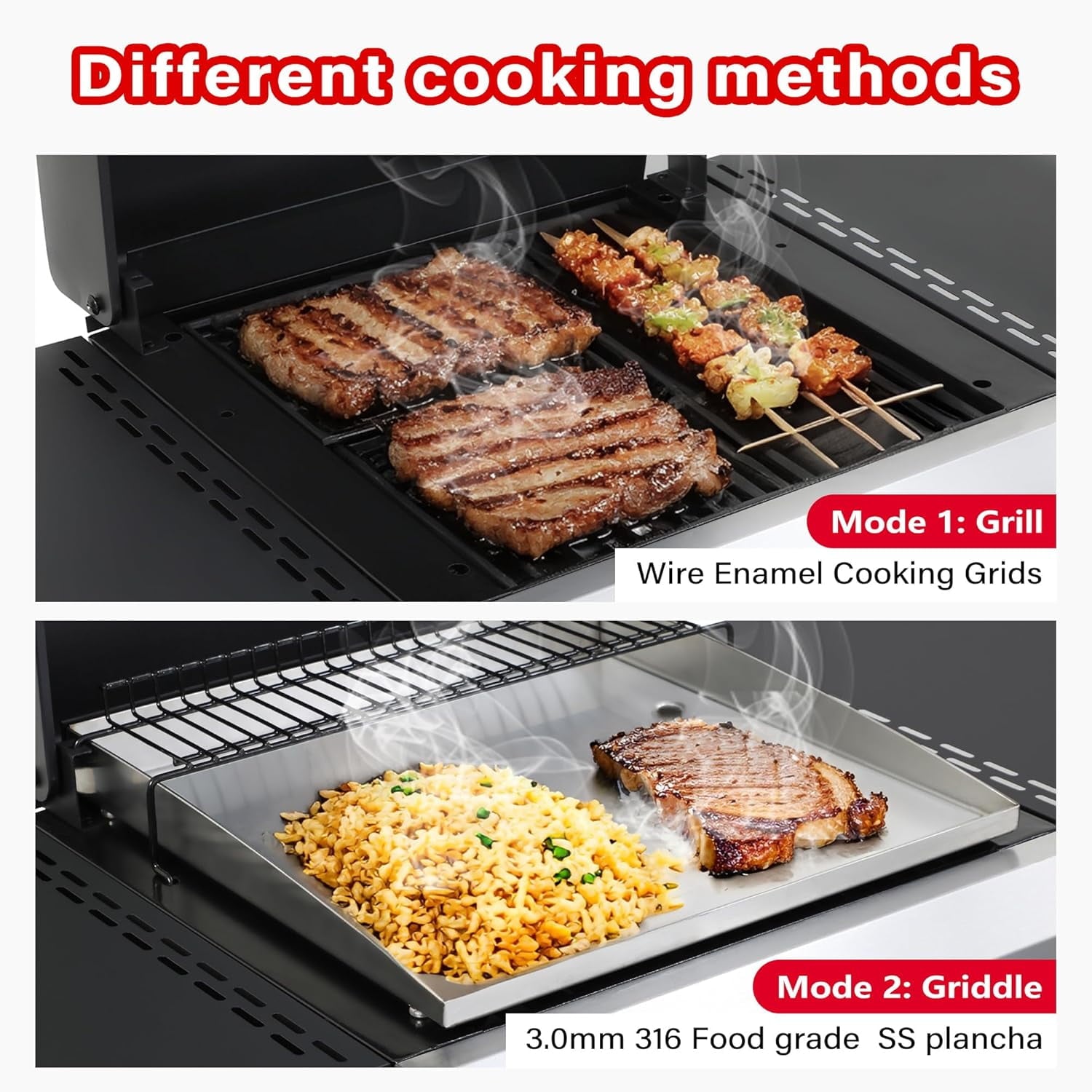 • ‌This 4-chamber propane gas barbecue grill has a strong output of 34200 BTU, which can achieve uniform heat distribution in a short period of time, ensuring that food is quickly and evenly cooked, meeting your needs for efficient barbecue.
