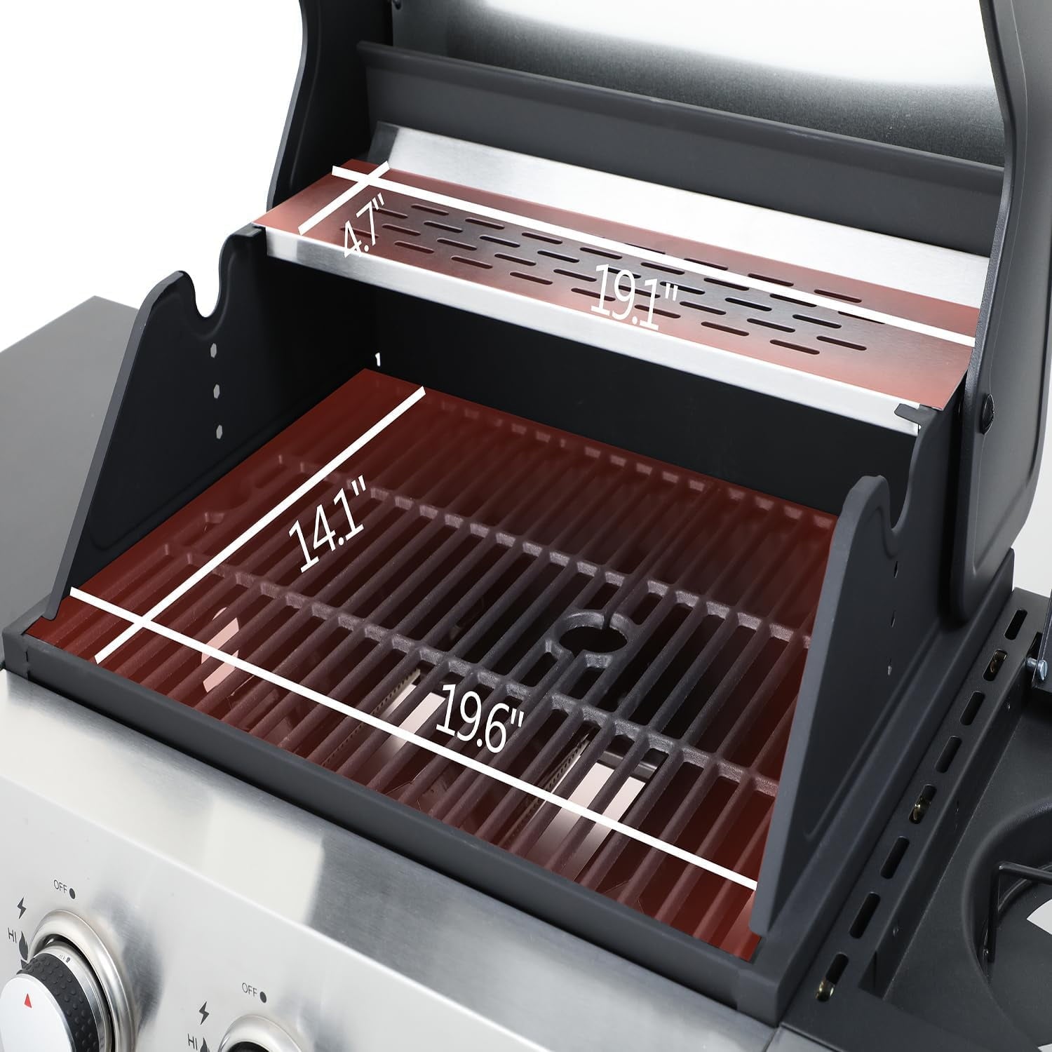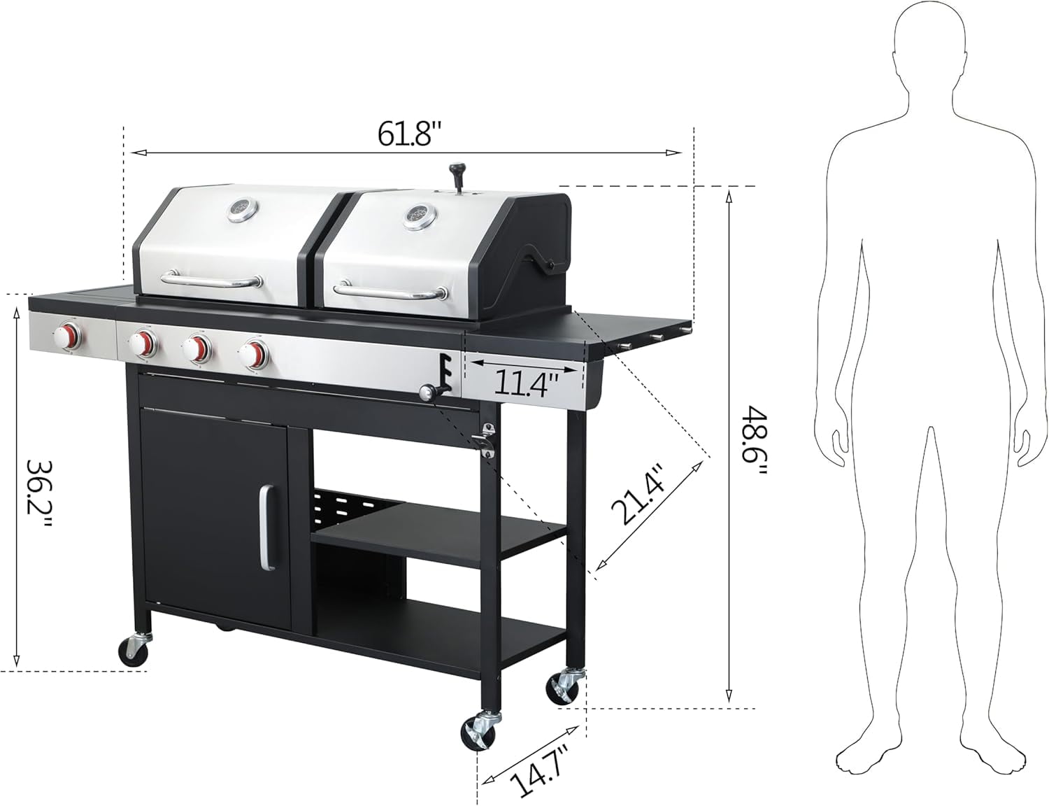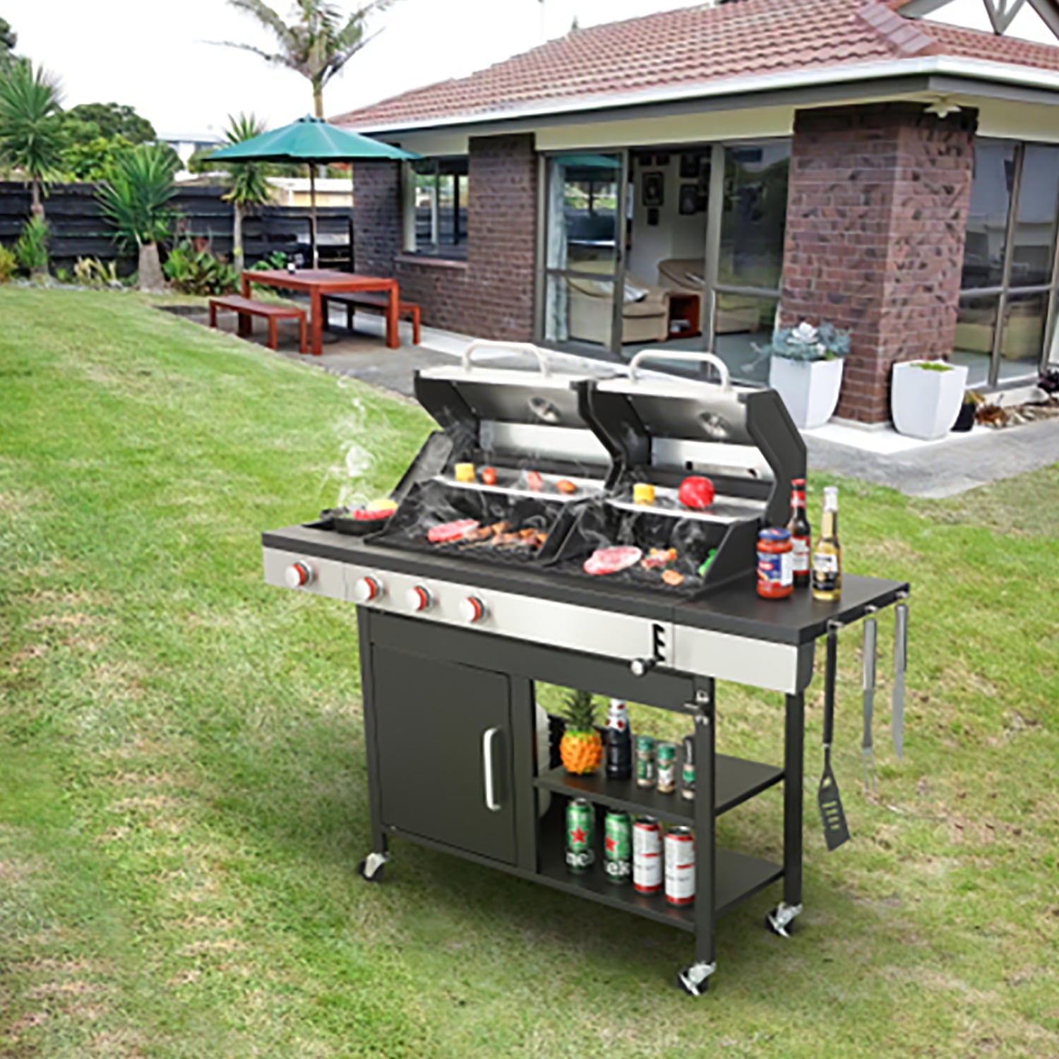 • ‌This 4-chamber propane gas barbecue grill has a strong output of 34200 BTU, which can achieve uniform heat distribution in a short period of time, ensuring that food is quickly and evenly cooked, meeting your needs for efficient barbecue.