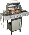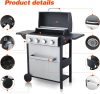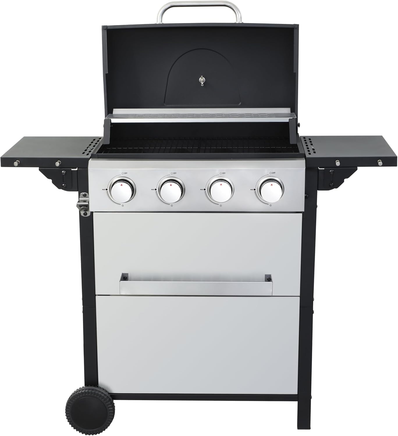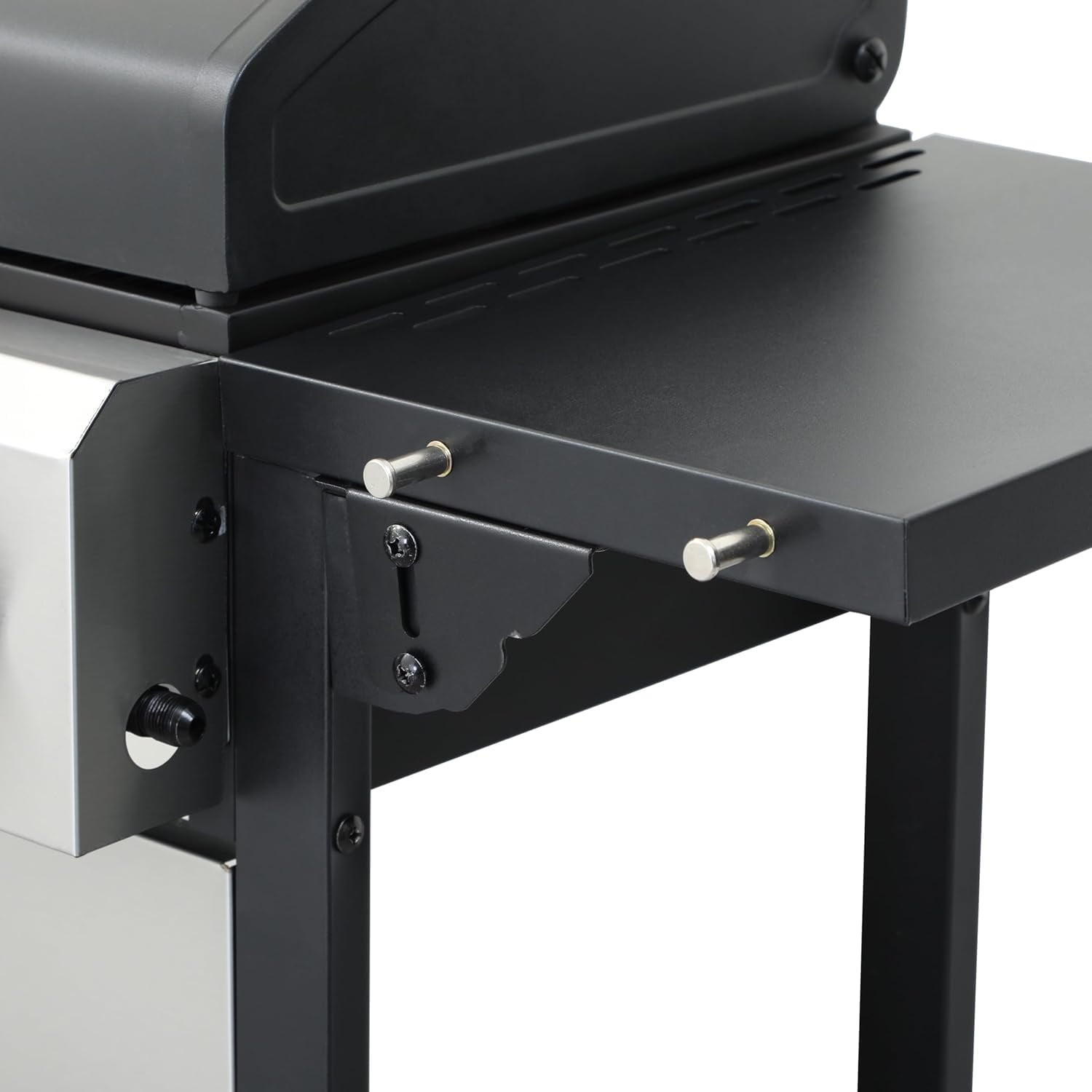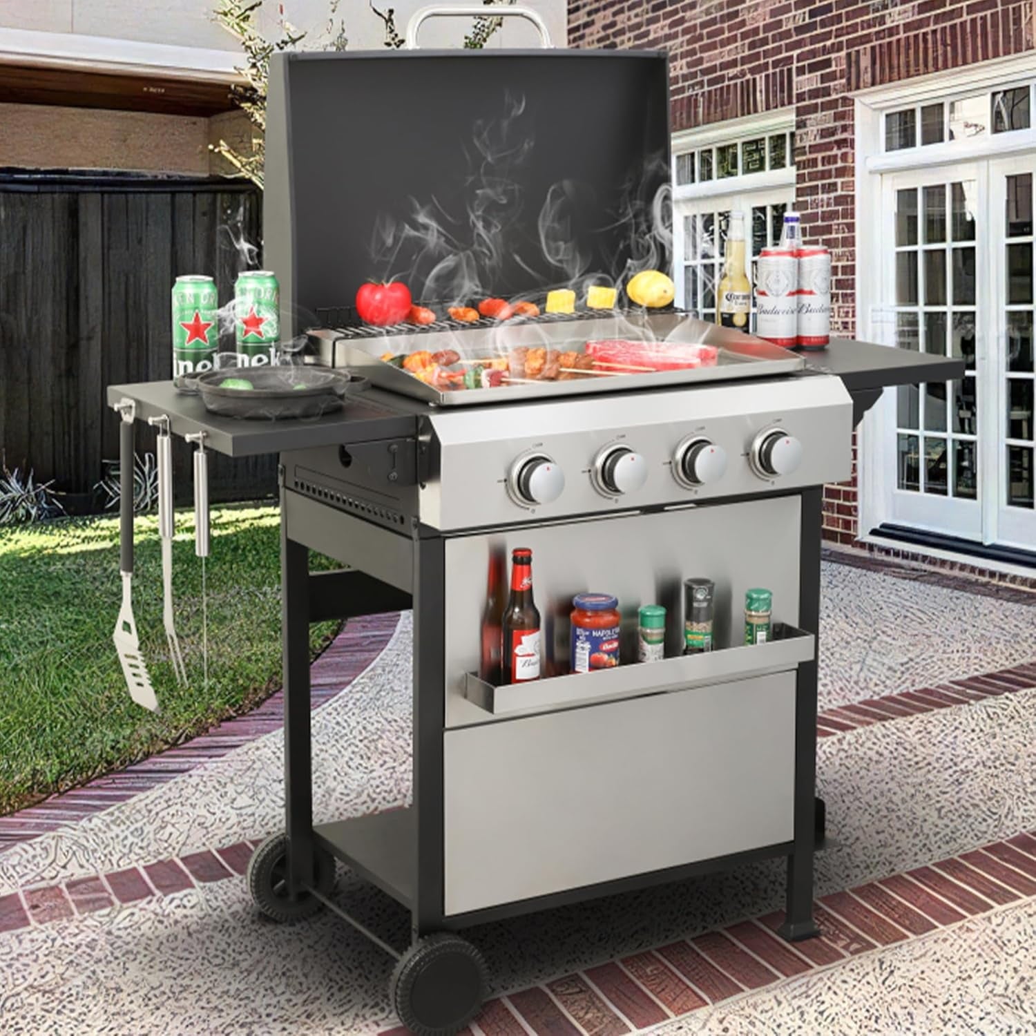 4-Burner Propane Gas BBQ Grill, 34200BTU Output With Wire Enamel Cooking Grids For Outdoor Barbecue, Foldable Side Table, Hanging Basket, Stainless Steel