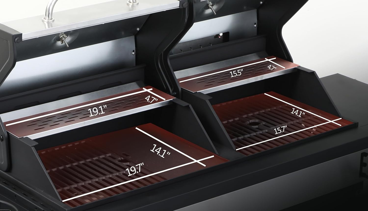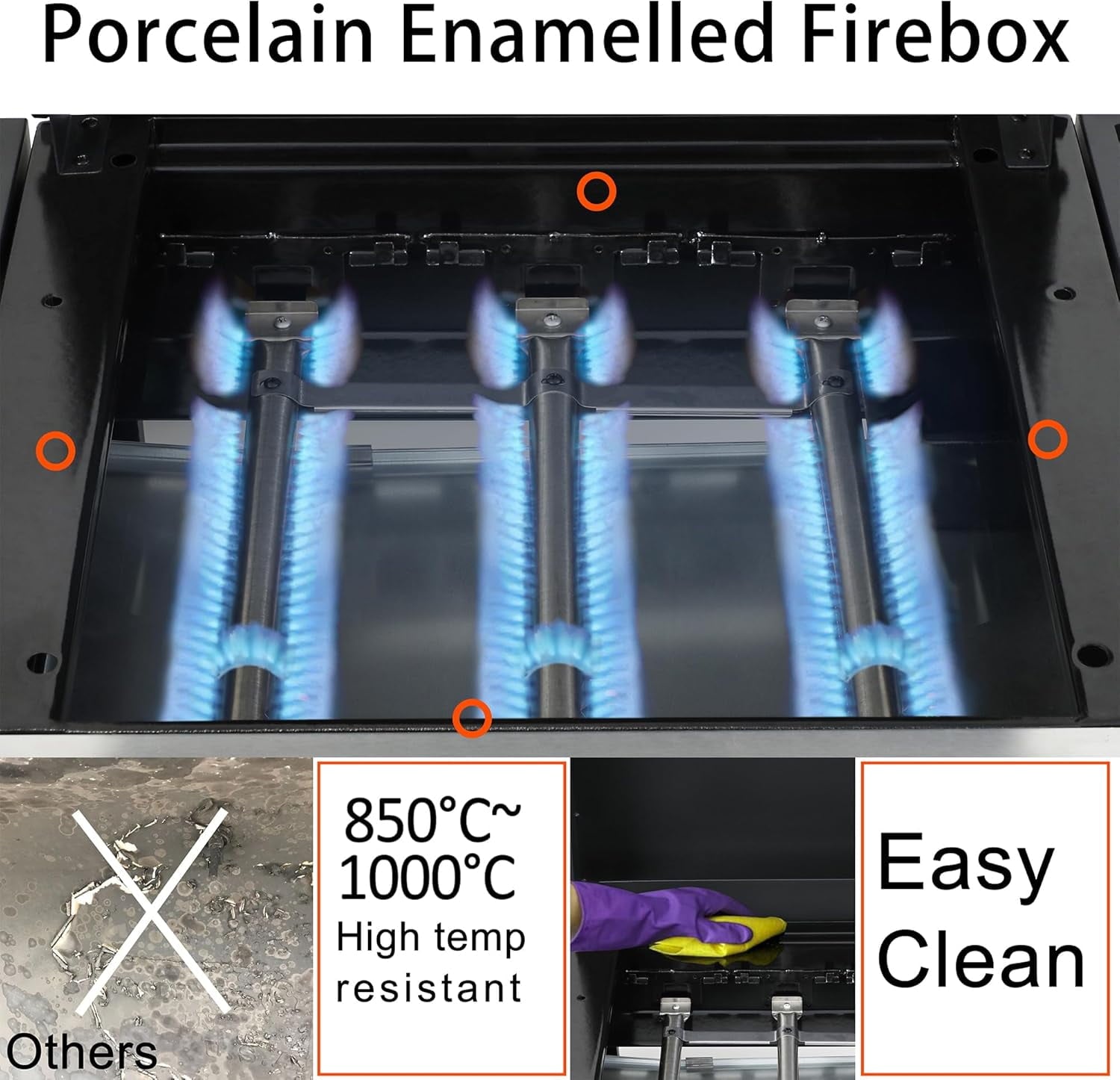• The firebox is made of high temperature resistant (550 ℃) powder coated steel, which is sturdy, durable, and easy to clean, ensuring the service life of the barbecue grill. The integrated automatic ignition system makes starting easy and fast, with just one push and one turn to easily ignite.