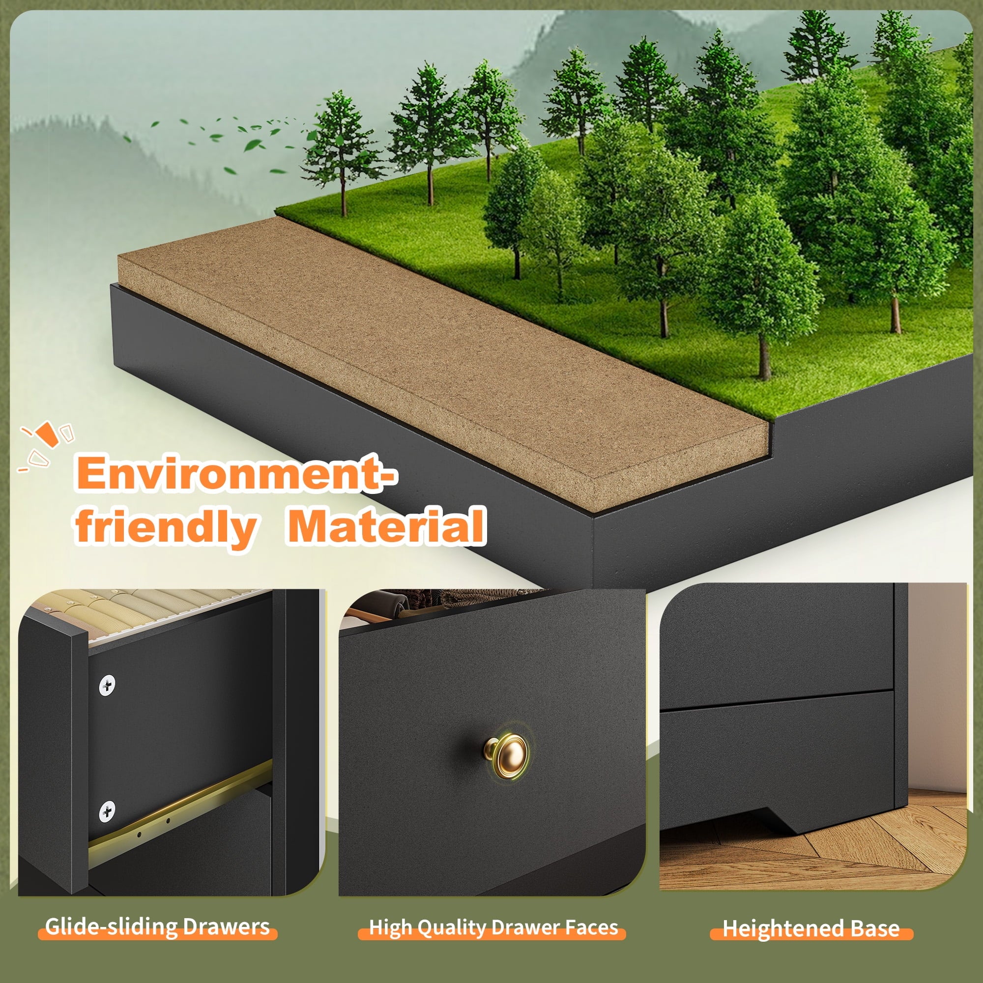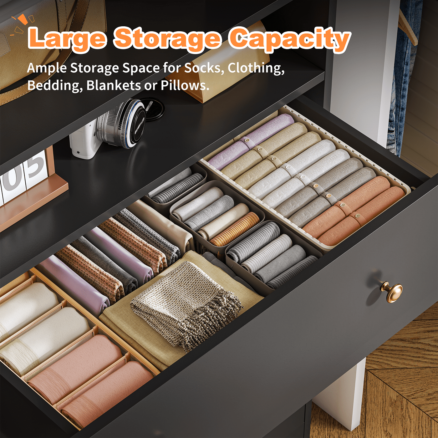 • 【High Quality and Durable】This dresser is constructed from high-quality wood,features ​​reinforced panels​​ supporting up to 66 lbs per shelf—ideal for storing books, electronics, or bulky bedding. Each drawer operates on ​​smooth metal sliding rails, ensuring effortless access even when fully loaded. Engineered for ​​long-term stability​​ in busy households!