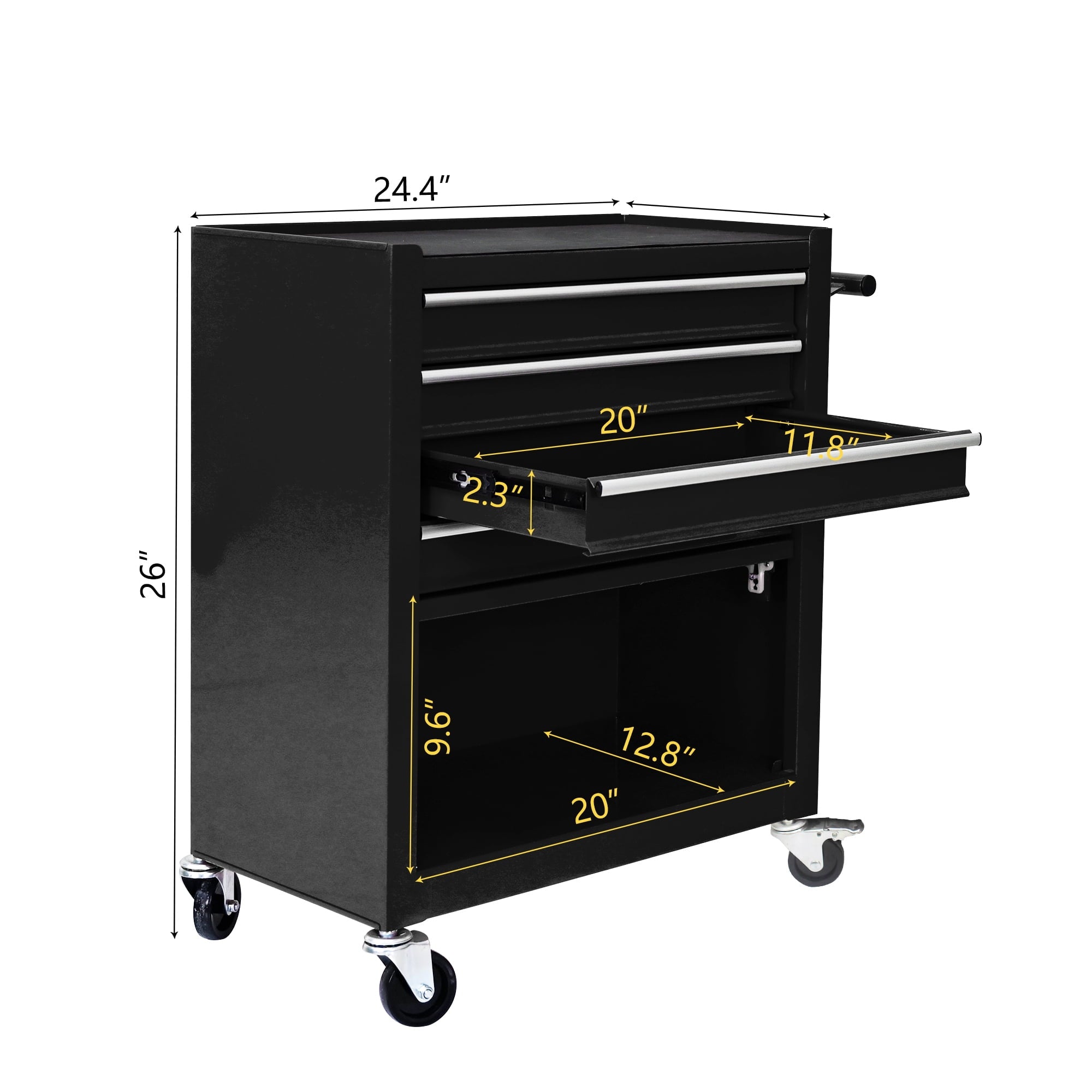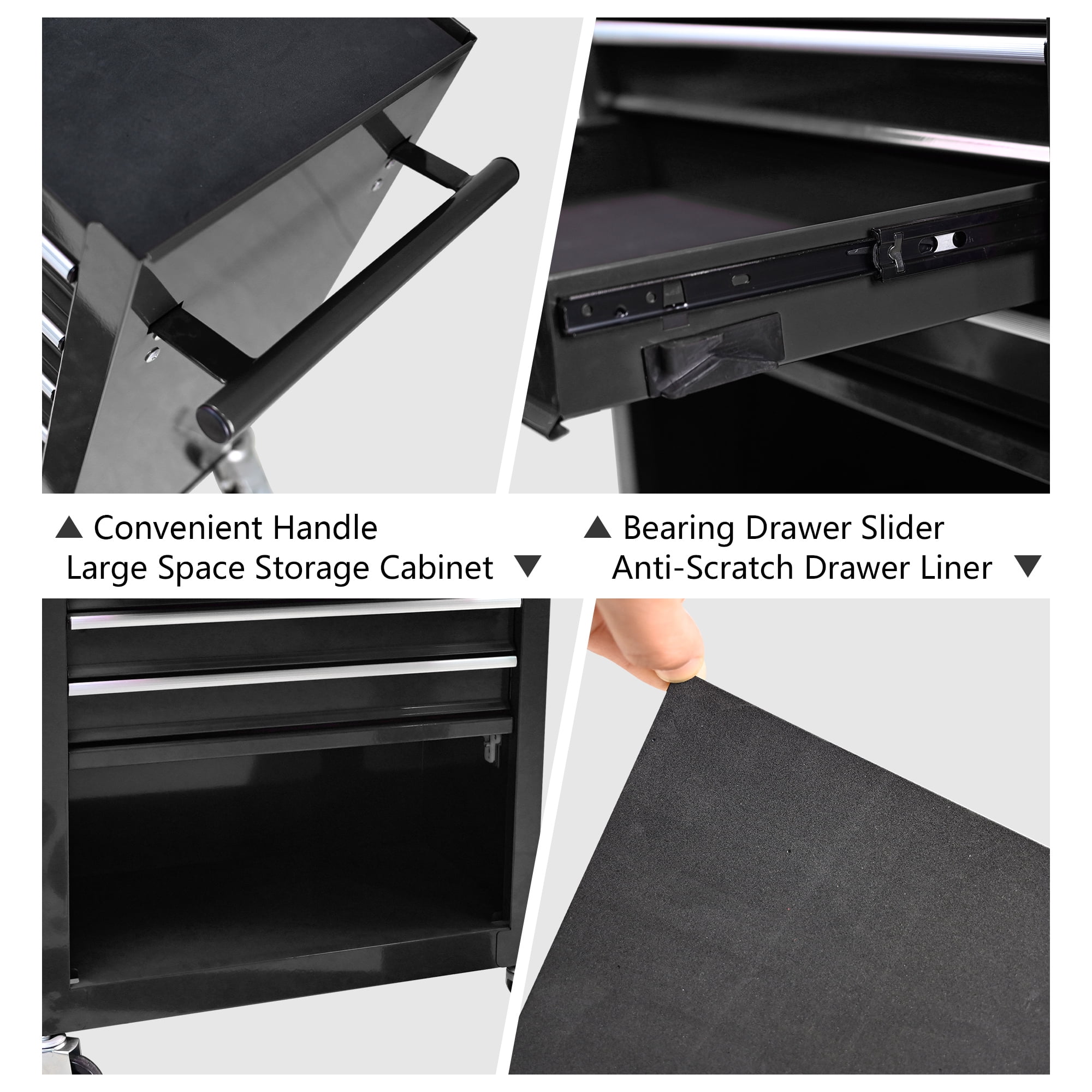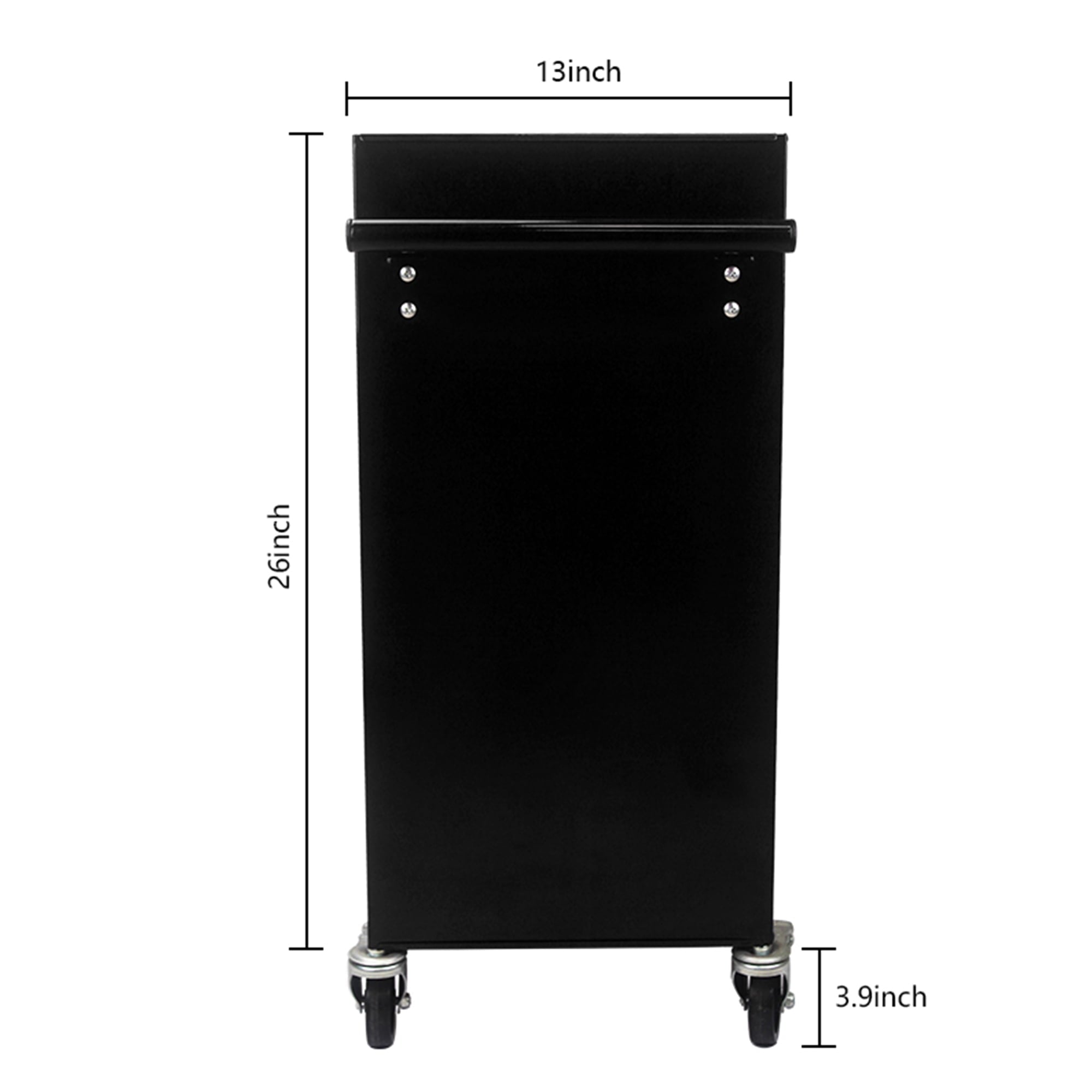 2PCS with Brake and 2PCS without Brake–With swivel casters could maneuver easily around work area. The wheels have locking mechanisms to prevent the tool cabinet from moving around on its own while in use.