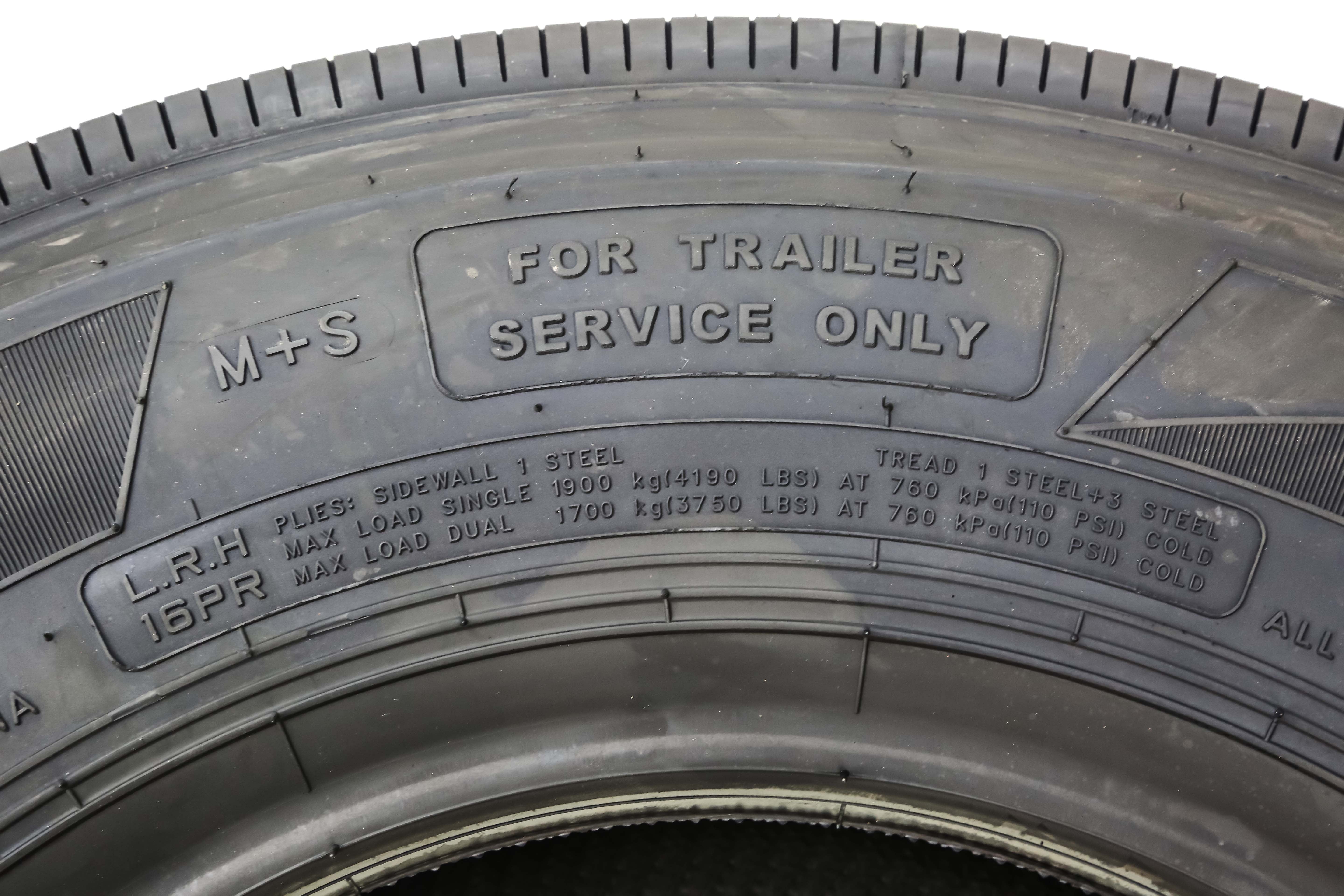 Heavy-duty ALL STEEL construction, 16 ply rating, load range H, 4190 lbs capacity. Great for big heavy RV or trailers, to replace regular ST235/80R16 tires. This tire is designed for trailer use only, rims are not included. This tire has been sold in large volumes to trailer manufacturers and tire dealers nationwide.