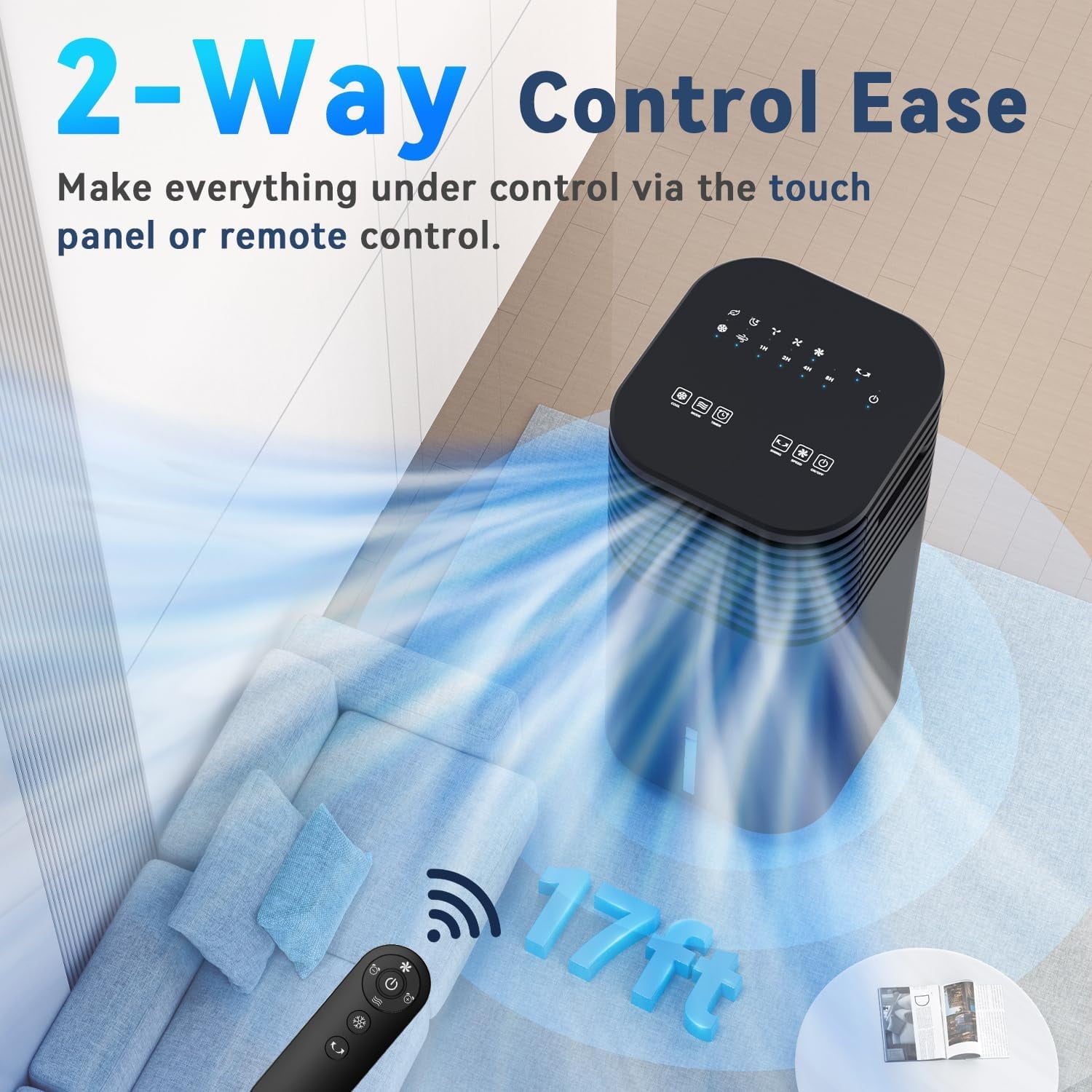 · Remote & Panel Control: Easy operation up to 20 ft away