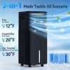 - 【3-in-1 Functionality for Multi-Season Use】This 3-in-1 portable air conditioner is suitable for dry summer climates. Its versatile operation includes: ① Fan Mode: Provides a breeze. ② Humidifier Mode: Add water to help cool and humidify dry air. ③ Air Cooler Mode: Add water and the included ice packs for enhanced cooling.