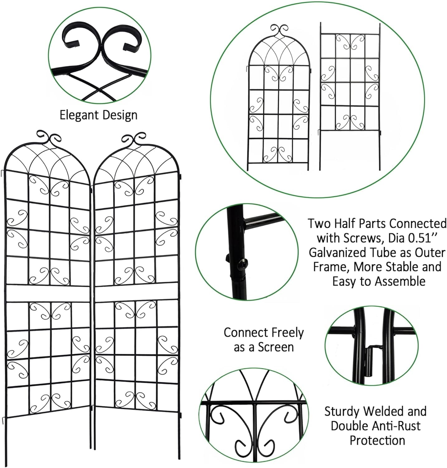 RUSTPROOF & DECORATIVE: Made of iron with a rustproof powder-coated finish, this trellis is perfect for both indoor and outdoor decoration. Use it for climbing plants, flowers, grapes, and more.