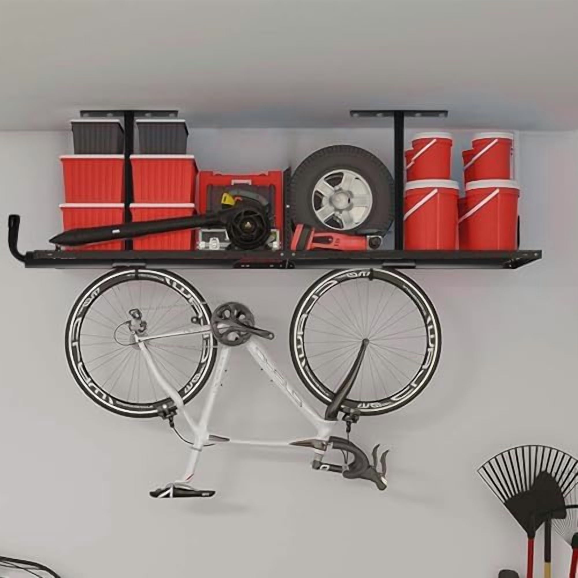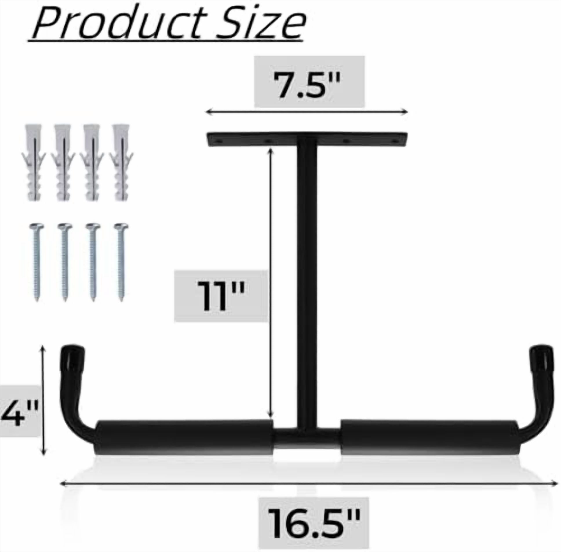 Value Pack: Included 4 packs of black overhead garage storage hooks, each hook measures approximately 16.5 “x 11” x 7.5 “inch. Enough quantity meets your different usage requirements. Note: Please confirm the size before you place an order.