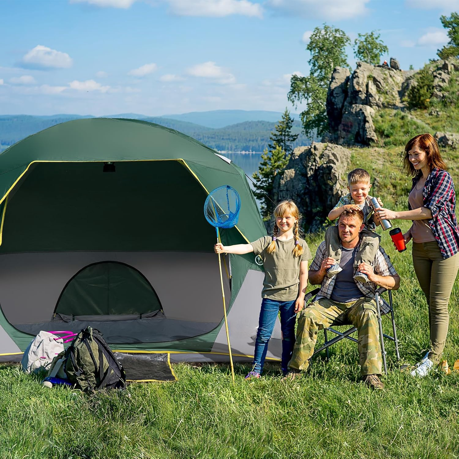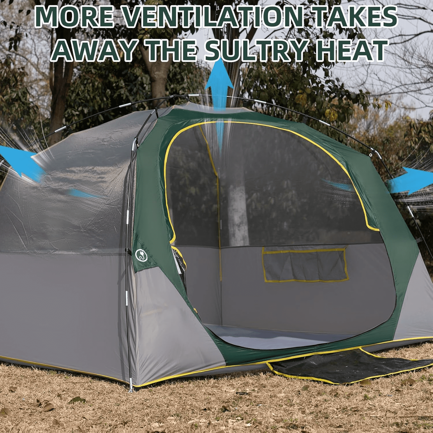 • Visibility and Ventilation: This large camping tent designed with quality mesh for top roof, door and windows. 3 roof vents plus low side vent create “chimney effect” ventilation, zippered access allows campers to adjust the vents from inside the tent, and overhead net window for plenty of air flow and heat dissipation for the instant cabin tent. You will enjoy the panoramic view from tent window and take pleasure in watching starry sky when you lying in tent with your families.