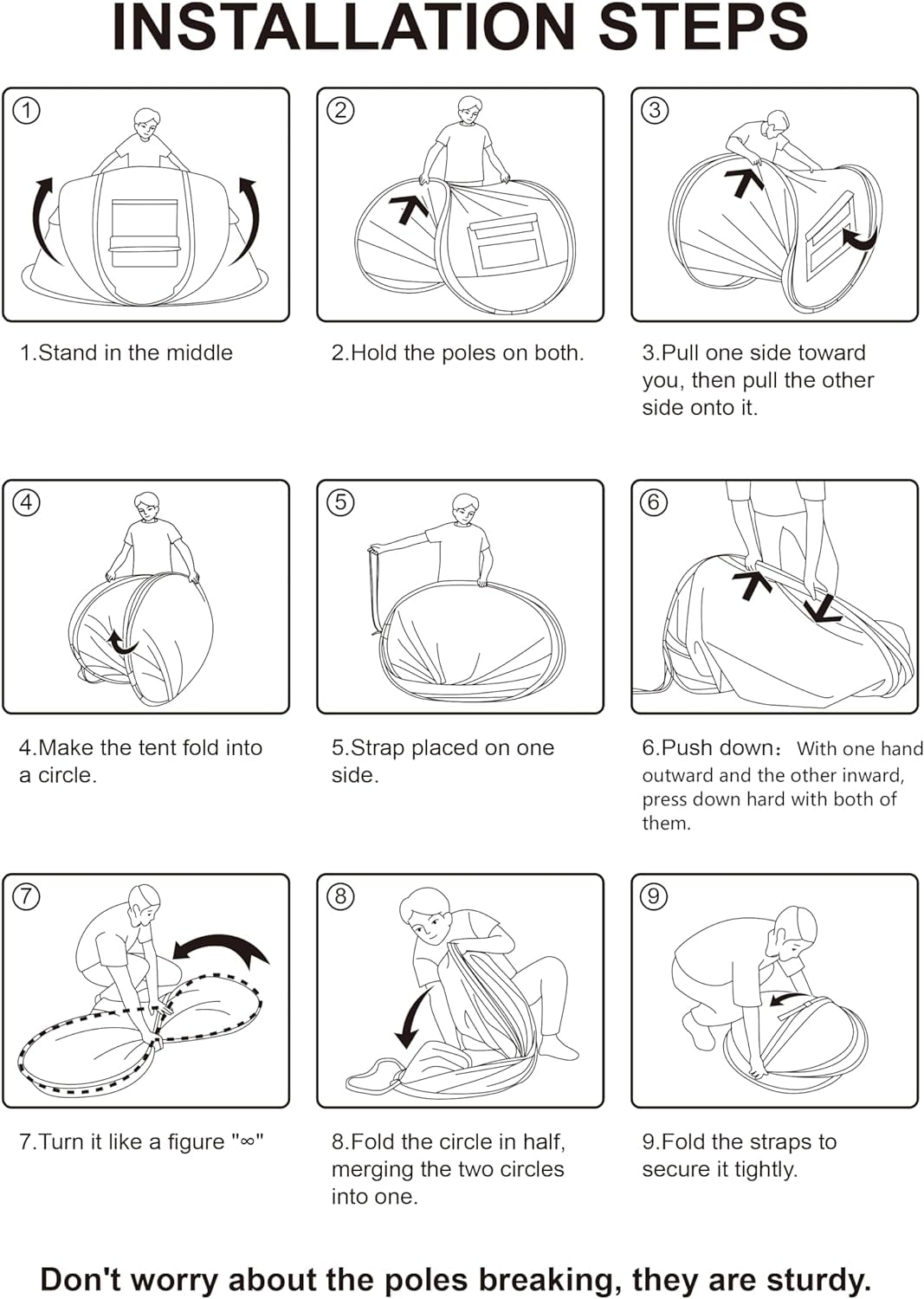 There is no need to attach any additional components, poles or covers to assemble! Just Throw it, it will Pop Up!