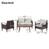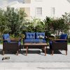 - If you’re looking to elevate your outdoor living space, the Outdoor Wicker Sofa is the perfect addition. All chairs with soft and comfortable cushions and pillows for ultimate relaxation. The solid wood armrests, legs, and tabletop are not only durable but also add an elegant touch to the overall design. The wicker material is resistant to water and UV rays, ensuring long-lasting use. The set also comes with a protective cover to keep the tabletop in pristine condition when not in use or during inclement weather. The legs of the sofa are adjustable to accommodate uneven terrain, providing a stable seating experience. This classic 4-piece combination is perfect for your backyard, patio or garden. Get to the Outdoor Wicker Sofa today and enjoy your time outside like never before.
