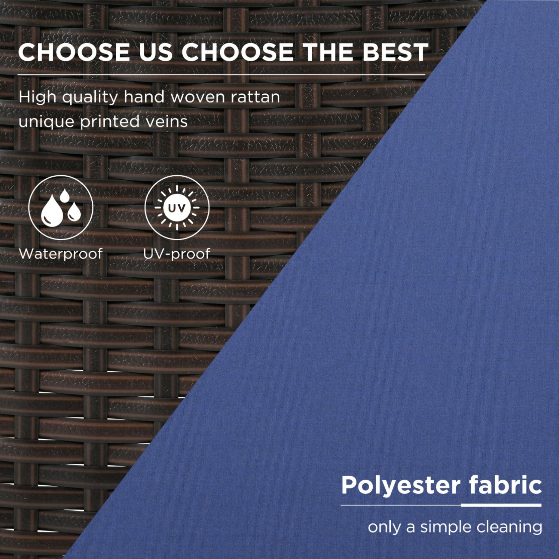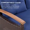 - [Durable Materials] Made from acacia wood, the armrests, legs, and tabletop are built to last. The PE rattan and cushion material is resistant to water and UV, making it will last for years to come.