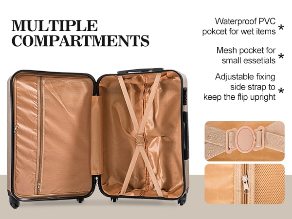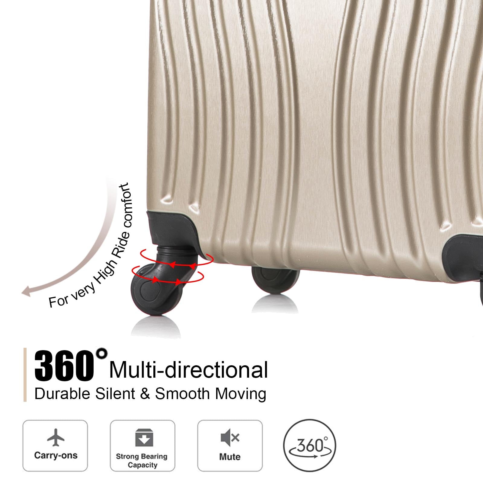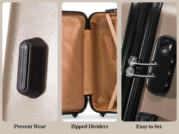 - Space-Saving Nestable Design & Effortless Mobility Smaller bags nest neatly inside larger ones for compact storage. *Ultra-smooth 360° spinner wheels* provide agile, quiet maneuvering through airports, hotels, and crowded spaces – even when fully loaded.