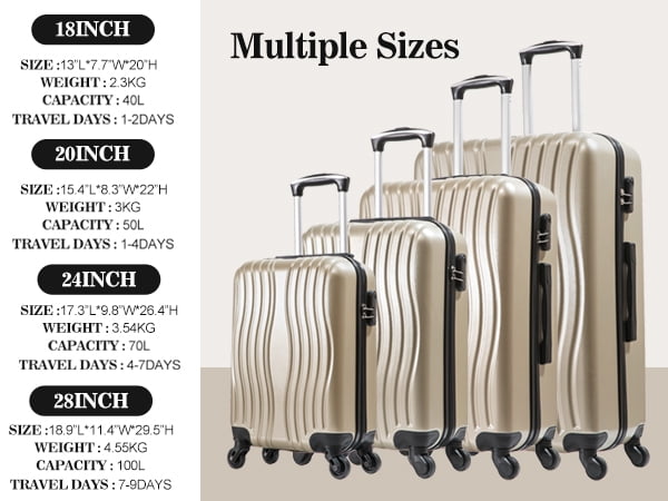 - Complete 4-Piece Family Travel Solution *18” & 20” carry-ons + 24” & 28” checked bags* – Matching lightweight hardshell suitcases designed for every traveler in the family, ensuring seamless coordination for group trips or extended vacations.