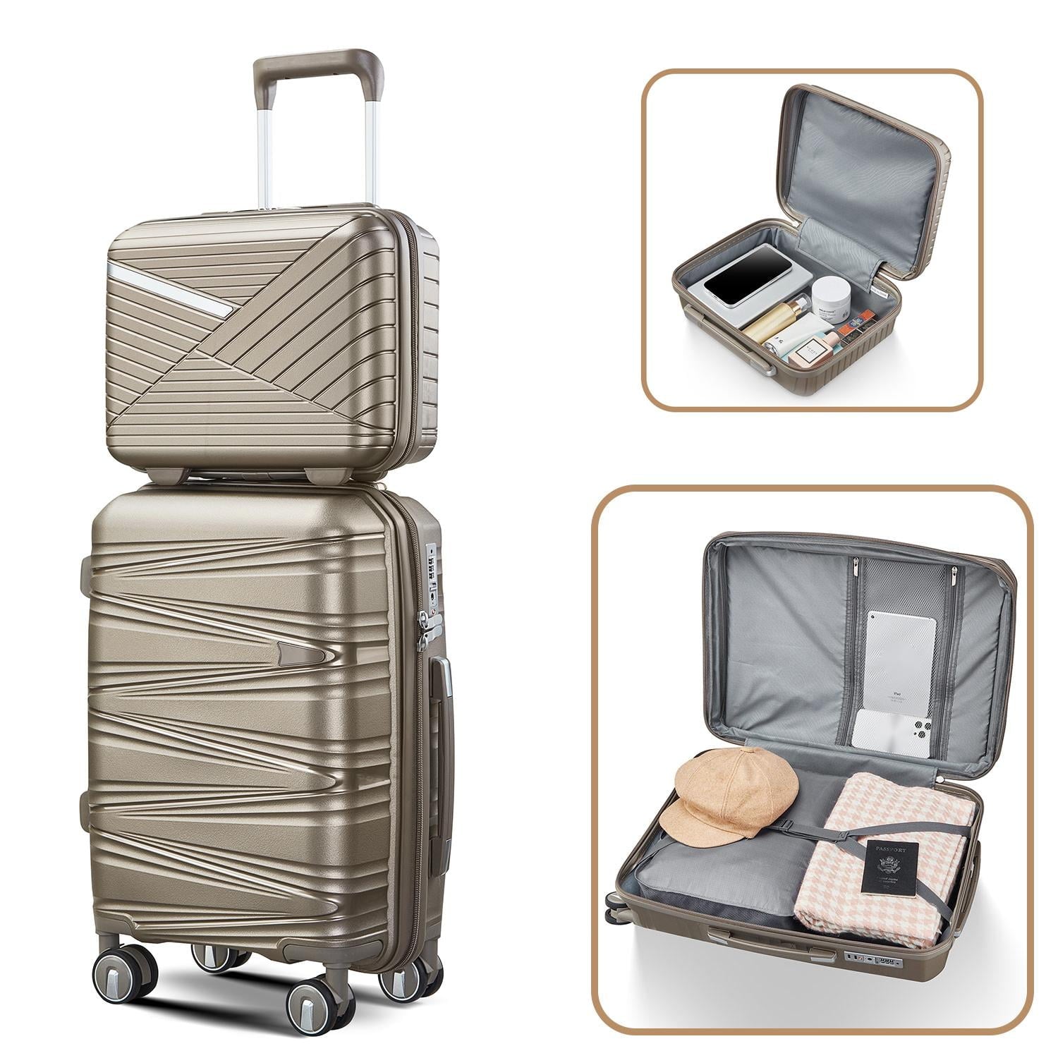 • 【Lightweight Luggage Sets】Made of environmentally friendly imported ultra-light PP material, Compared with ABS and PC plastics, PP materials suitcase have better resilience, it can be restored to its original state after being hit violently. Luggage 4 piece sets are the best choice for travel, family travel and business travel.
