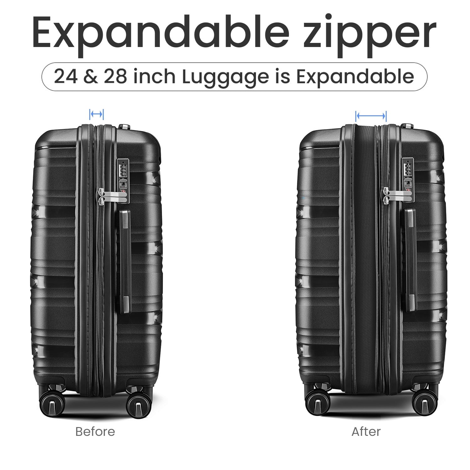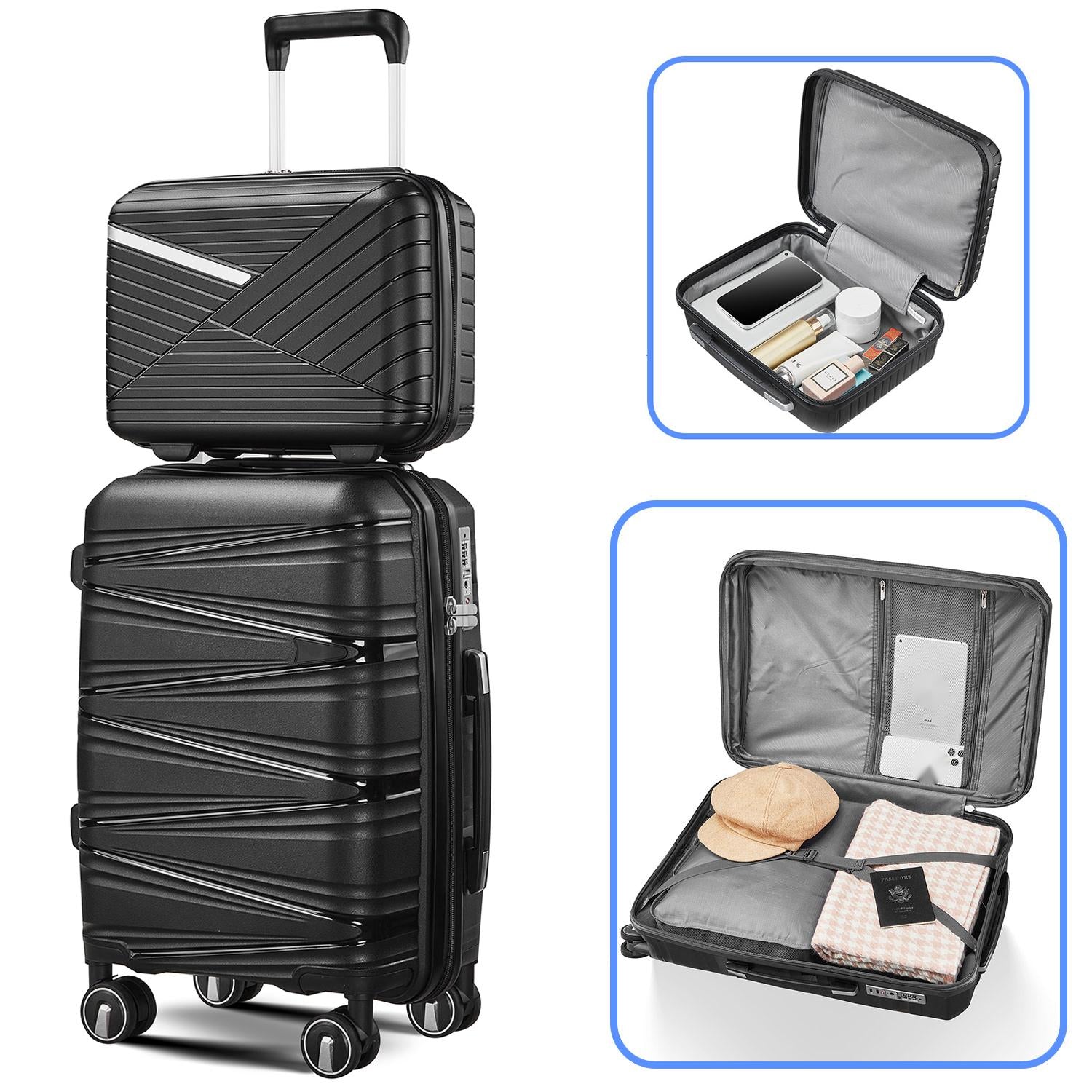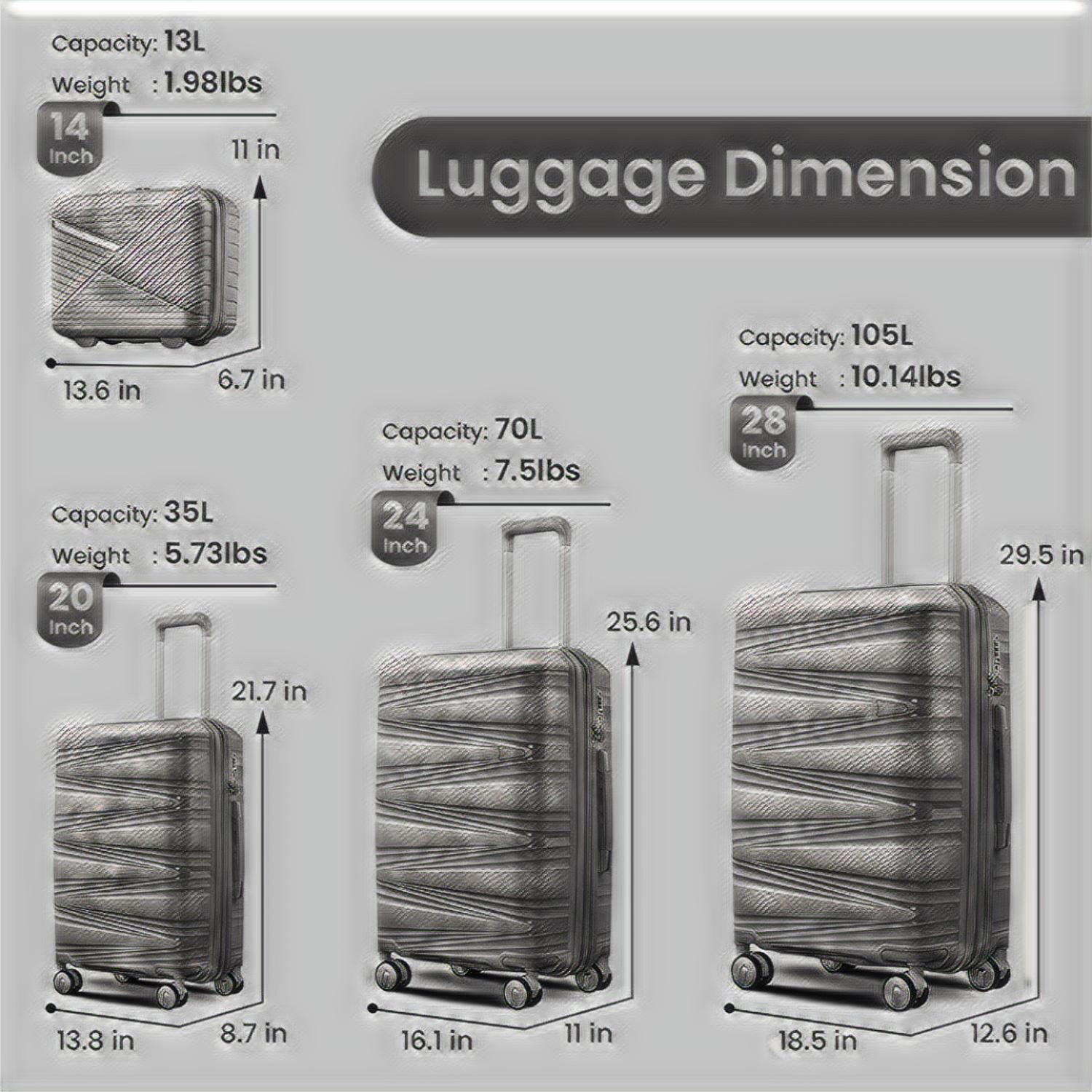 4 Piece Luggage Set Expandable Hardshell Travel Luggage Sets 8 Spinner Wheel Suitcase Wheels TSA Lock Suit Case, PP Lightweight & Durable wheels Upright Suitcase, 14/20/24/28 Inch