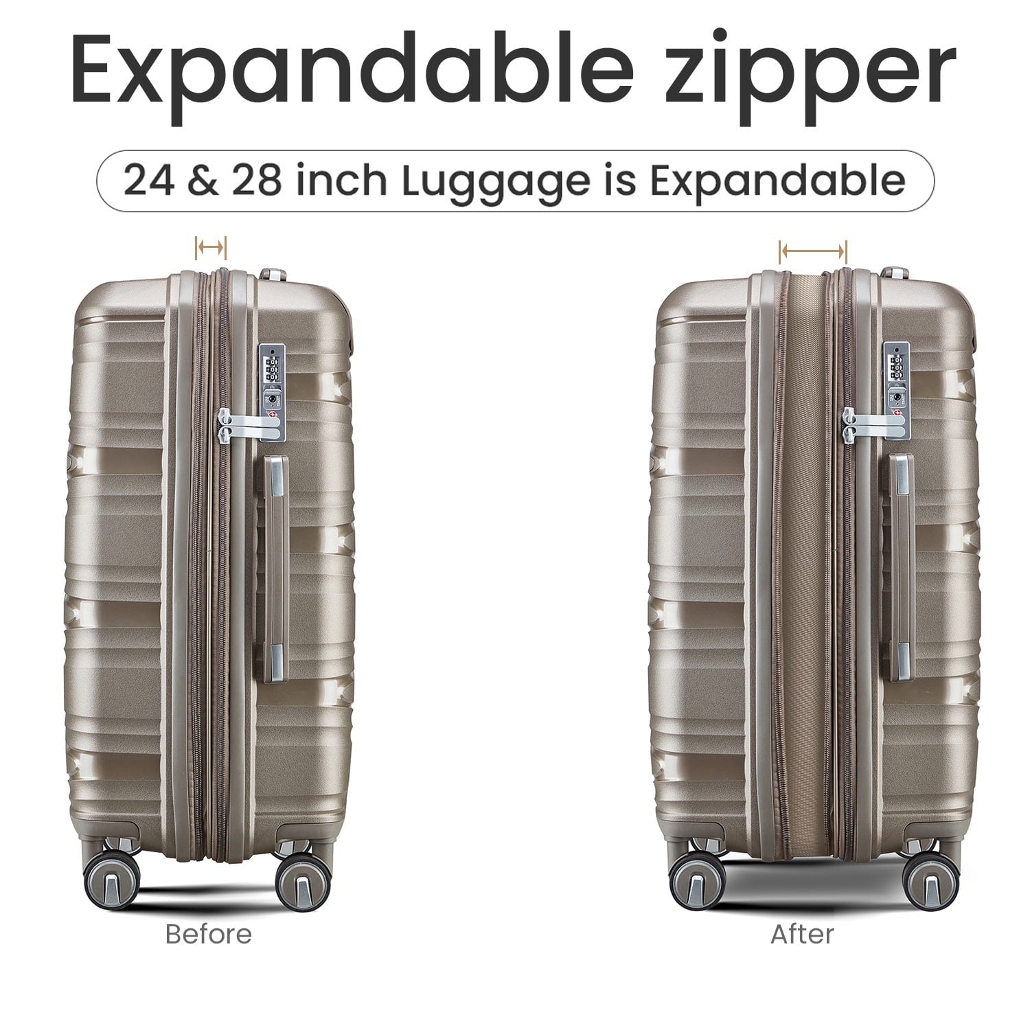 Home Luggage & Luggage Sets 4 Piece Luggage Set Expandable Hardshell Travel Luggage Sets 8 Spinner Wheel Suitcase Wheels TSA Lock Suit Case, PP Lightweight & Durable wheels Upright Suitcase, 14/20/24/28 Inch