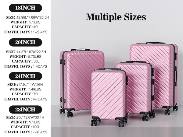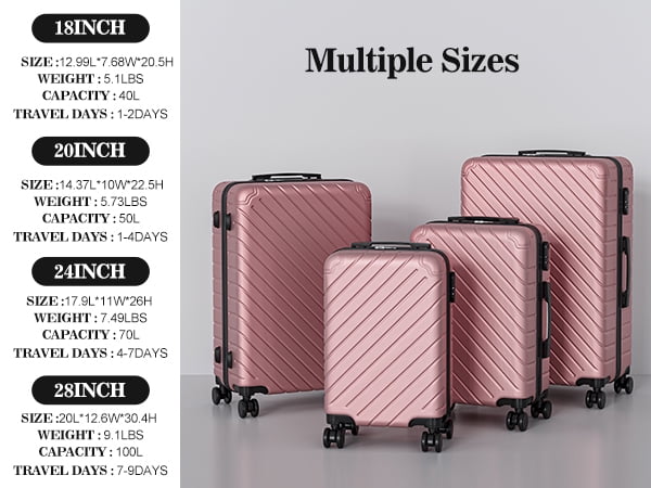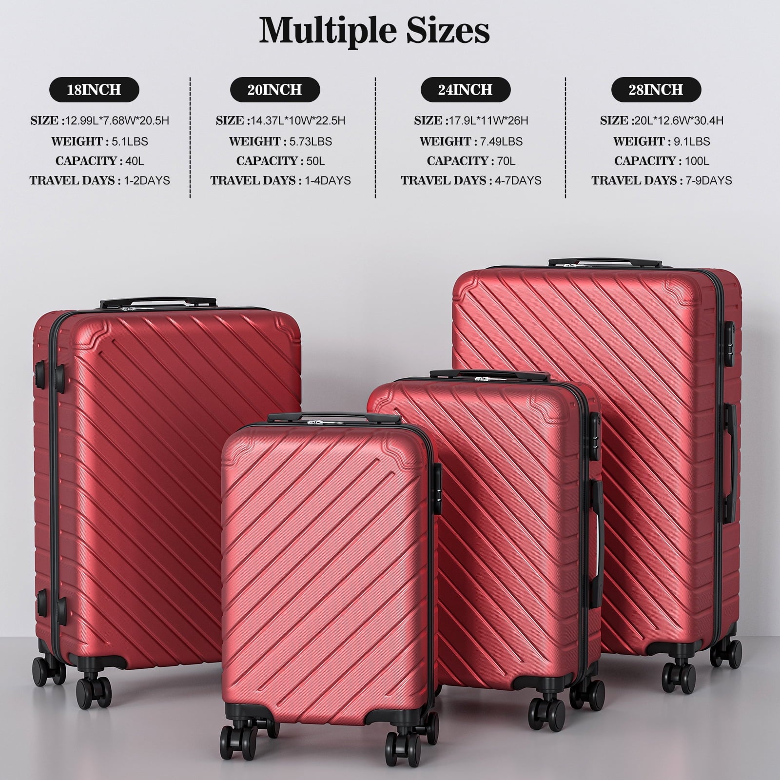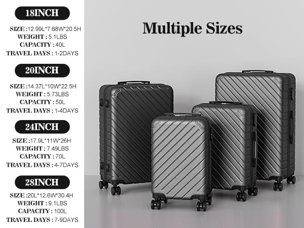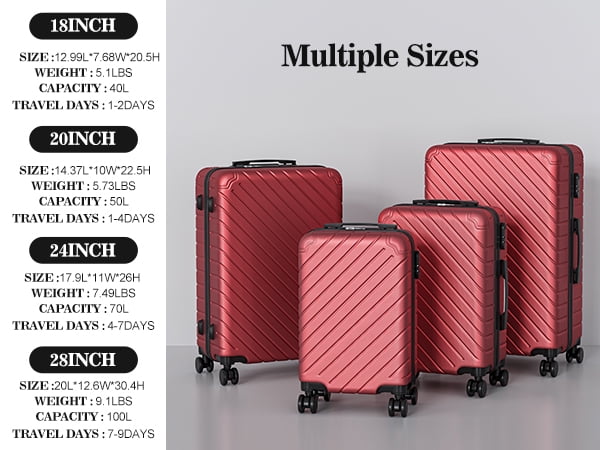 • ‌4-Piece Luggage Set (20”/24”/26”/28”)Complete solution for family trips and long travels. Includes carry-on, medium, and large suitcases