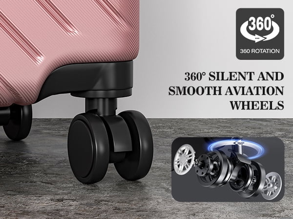 • 360° Silent-Spin Wheels & 3-Step HandleGerman PU bearing wheels glide smoothly on all surfaces. Adjustable aluminum handle fits users from 5’0″ to 6’5″.