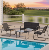 • This 4 piece outdoor patio furniture set with glass table includes a love seat, two single chairs and a glass table (ideal outdoor furniture sets).