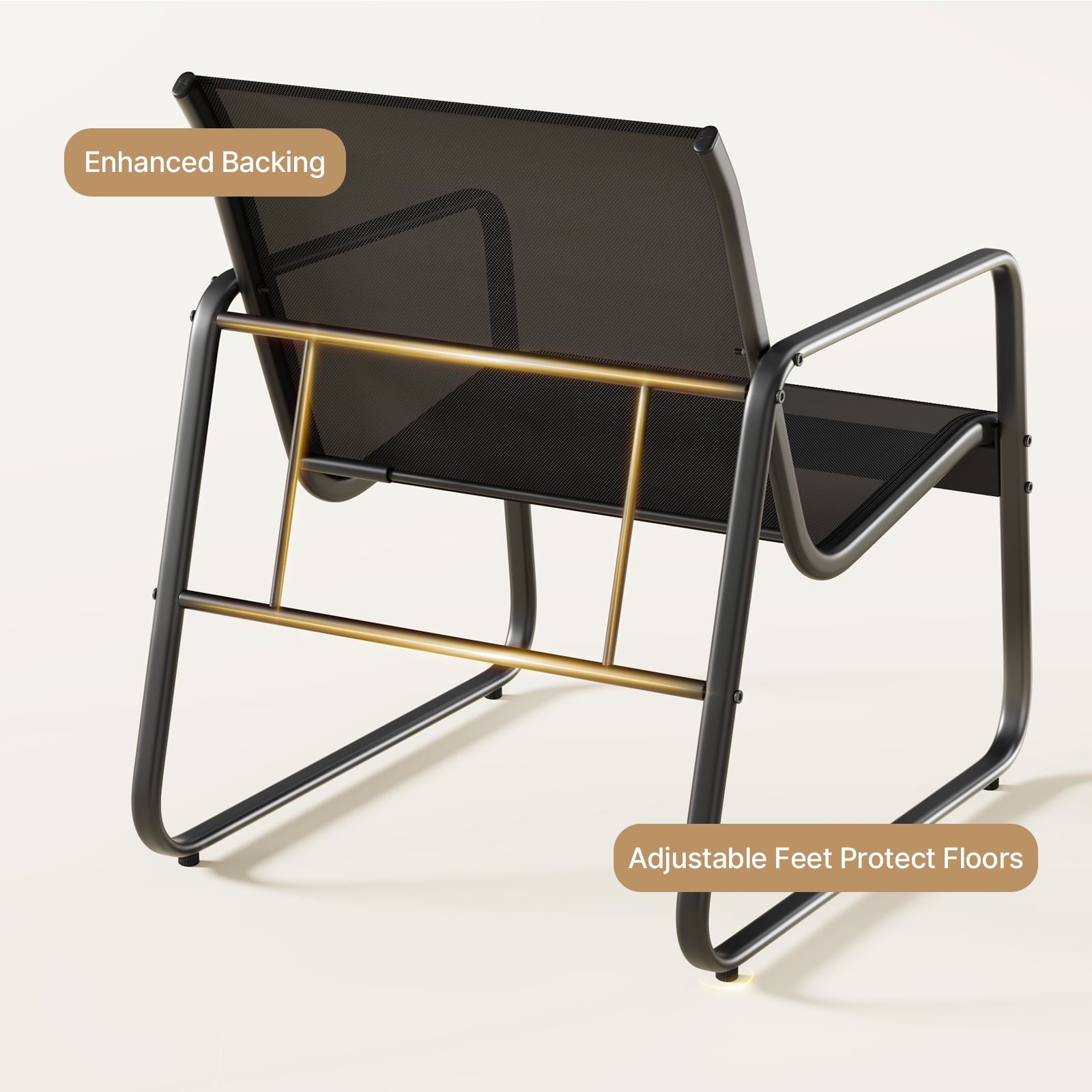 • “W”-shaped steel frame on the back provides extra support for relaxation.