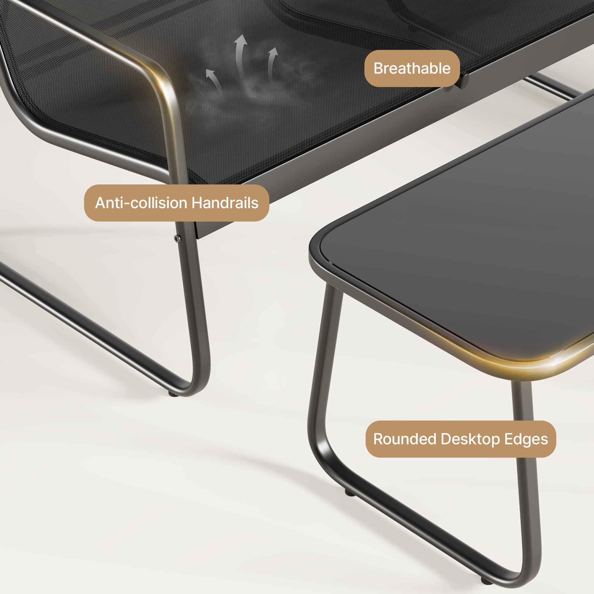 • Strong load-bearing: Love seat 660 lbs, single chair 330 lbs, glass table 110 lbs for long-term use.