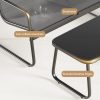 • The seat of this outdoor furniture set uses breathable textile fabrics for cool, comfortable seating.