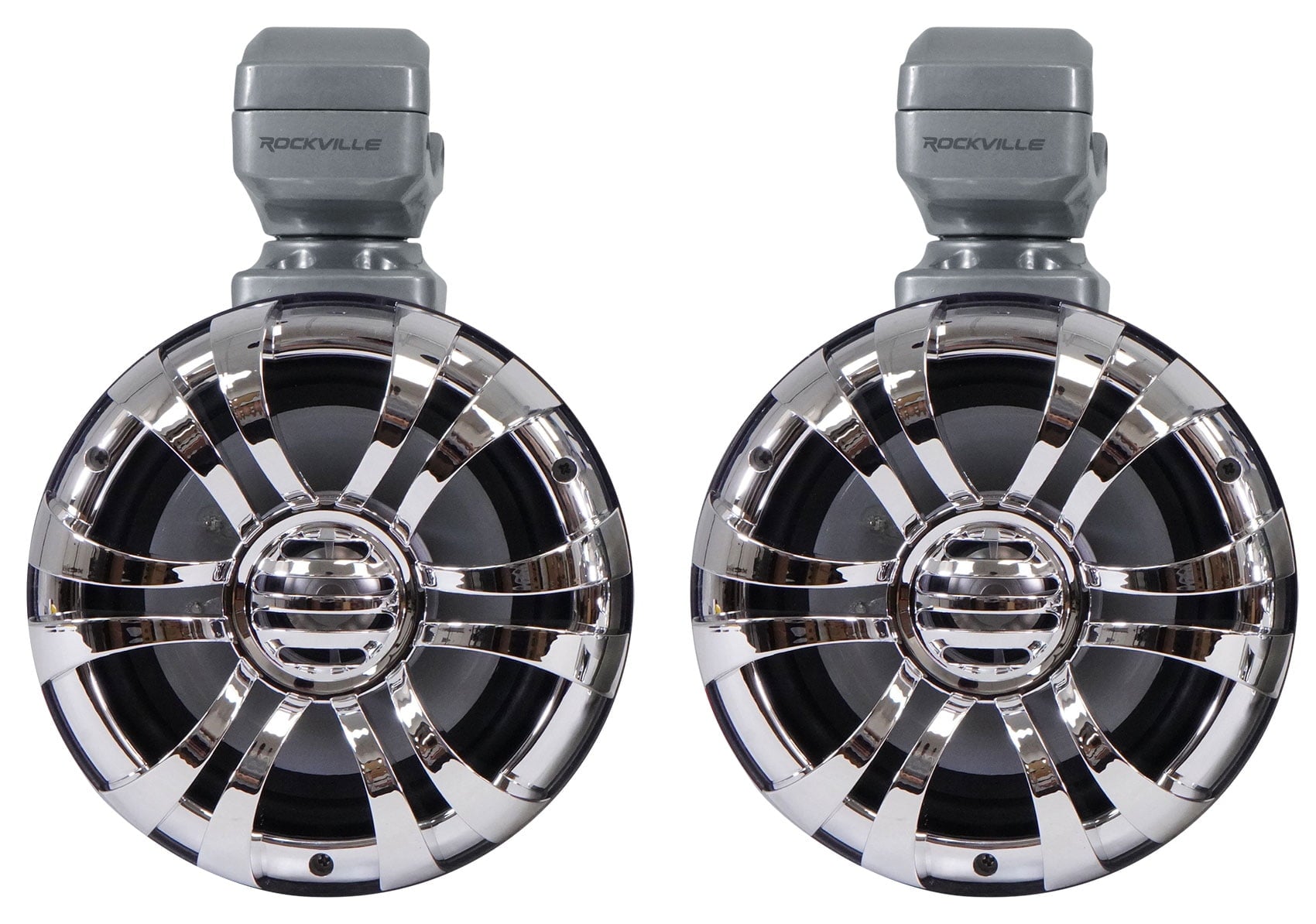 Pair Rockville WB50KLS 5.25" 250w Polished Silver Wakeboard Tower Speakers w/ Built in LED’s