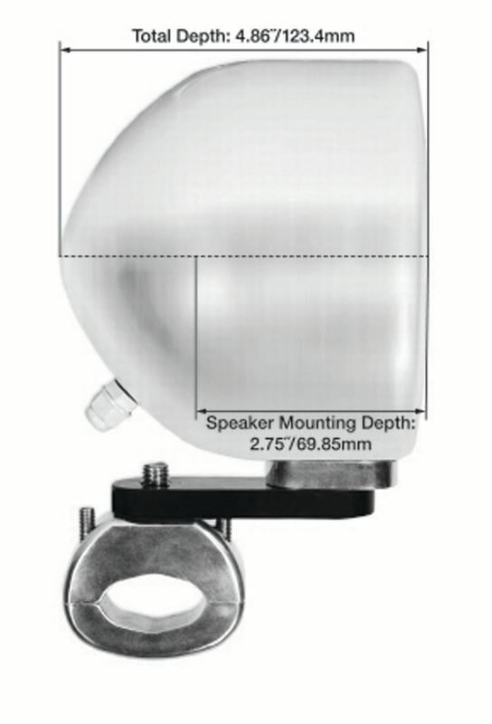 - High efficiency design features the perfect airspace for Select Rockville Kicker and Polk Audio 4 speakers. Rugged 360-degree swivel mounting clamps made of 6061 aluminum. Clamps feature Stainless steel quick release hand knobs for adjustment and security. Fits round or square bars from 3/4 diameter to 1.5 diameter. Includes Rubber inserts to protect your bar and ensure a snug fit