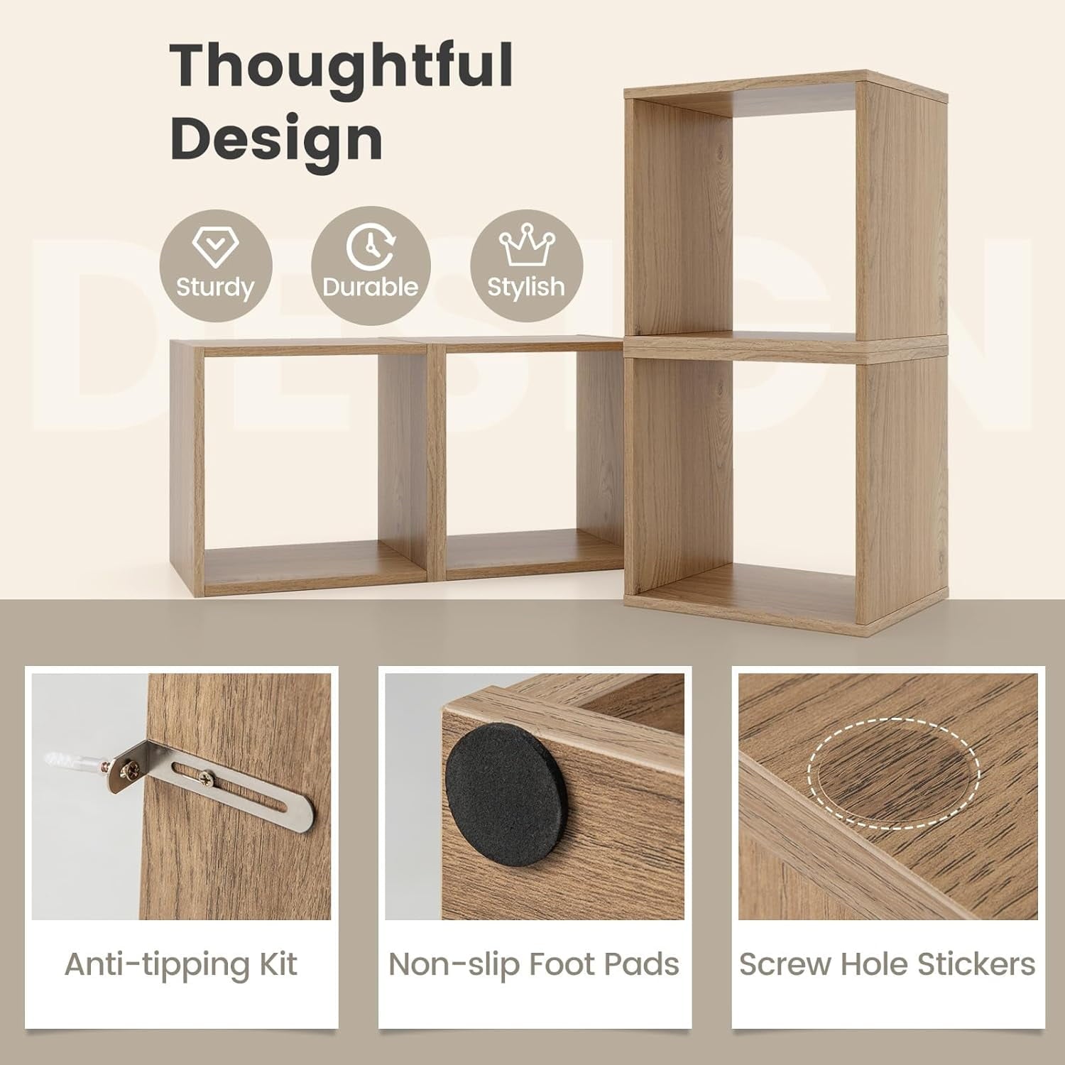 - STURDY & SAFE CONSTRUCTION: Built with high quality E0 Grade particle boards, the cubical bookcase is quite strong and durable. There anti-toppling devices behind to ensure safety, so you are rest assured to use them stacked.