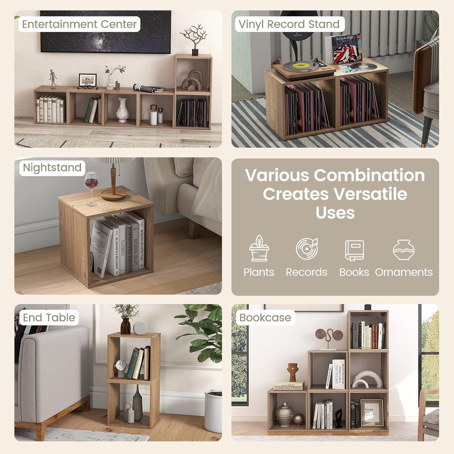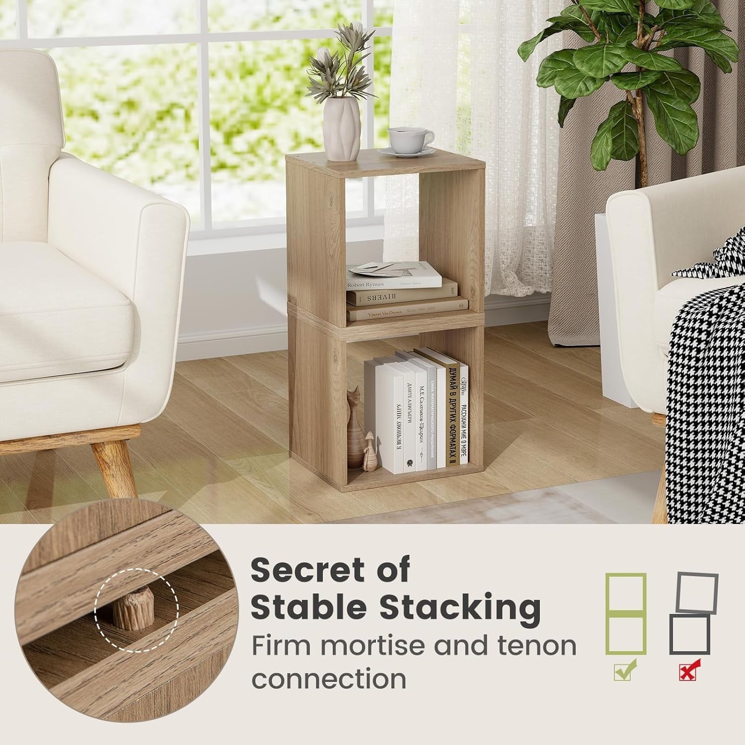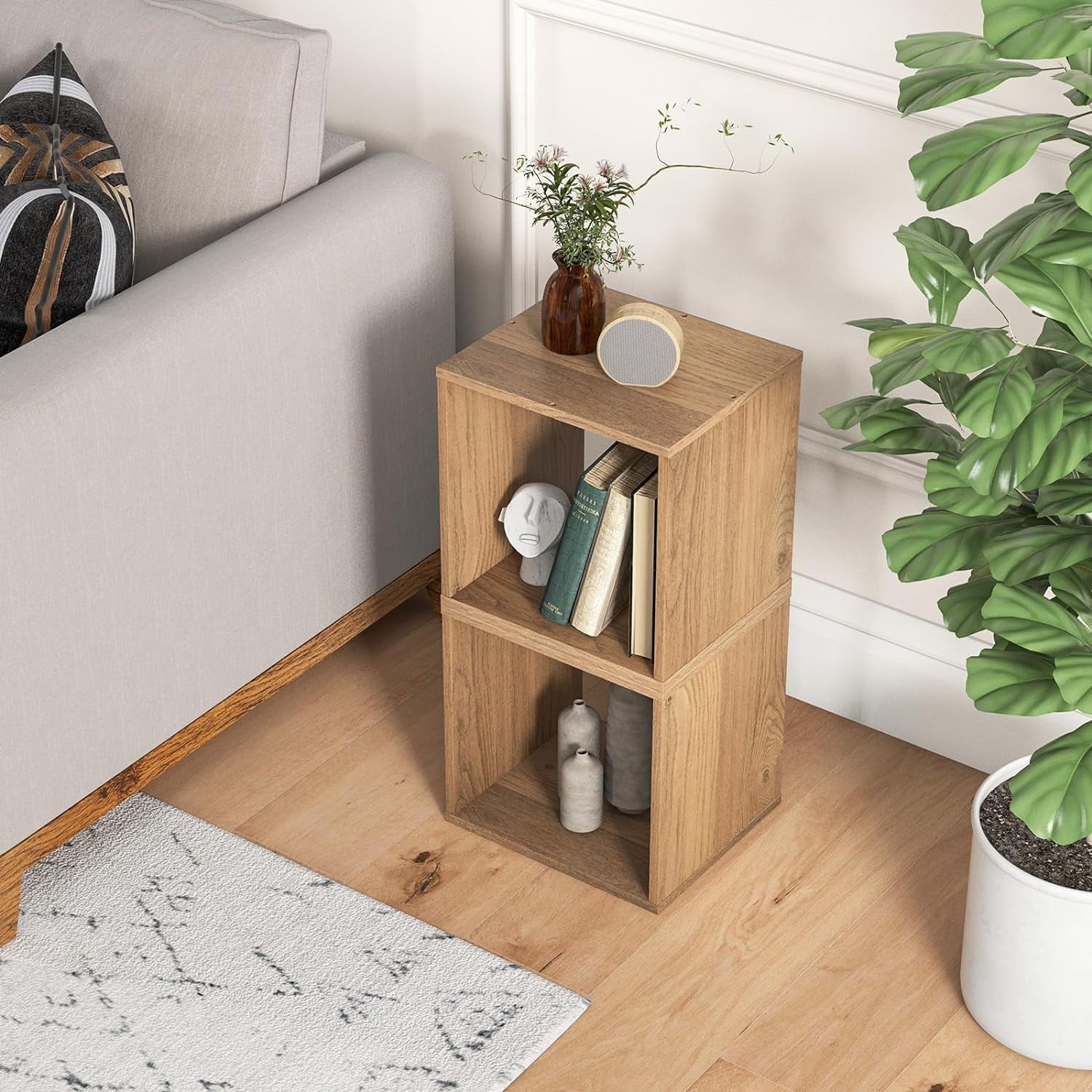 - VERSATILE FOR VARIOUS OCCASIONS: These 4 square cubes can be used as a vertical bookcase, night stand or side table when you stack them upward. You can also put them in a row to get a horizontal book shelf or separate them as storage organizer in different places.