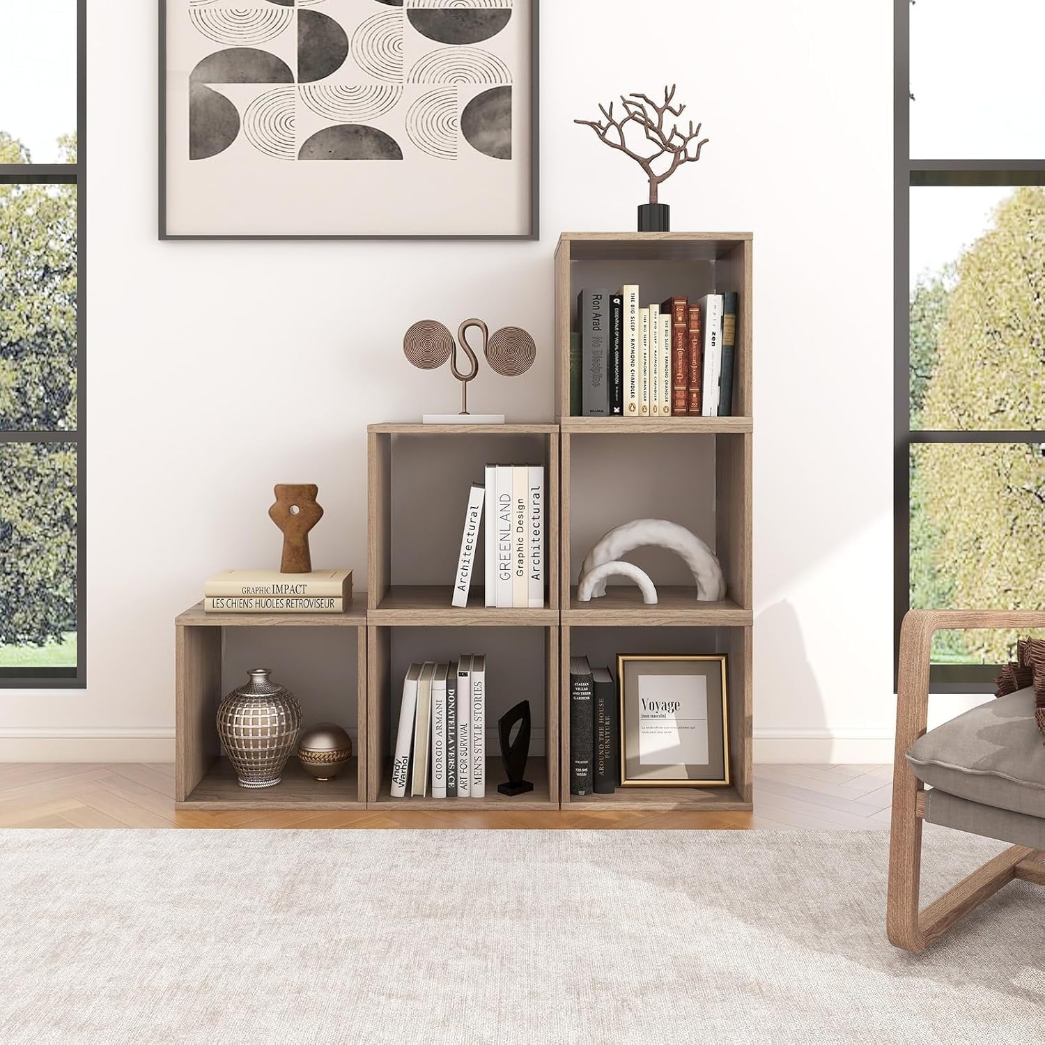 - FREE COMBINATION DESTIN: The 4 bookshelf cubes can be stacked or put in a row as you like to store or display. You can also separate them for different use as independent ones. If you get multiple, you may get more possibilities for them.
