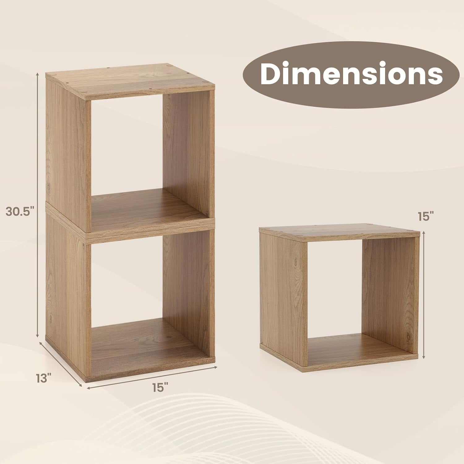 Overall Dimension(Each Cube) 15’’ x 13’’ x 15’’/38cm x 33cm x 38cm(W x D x H)