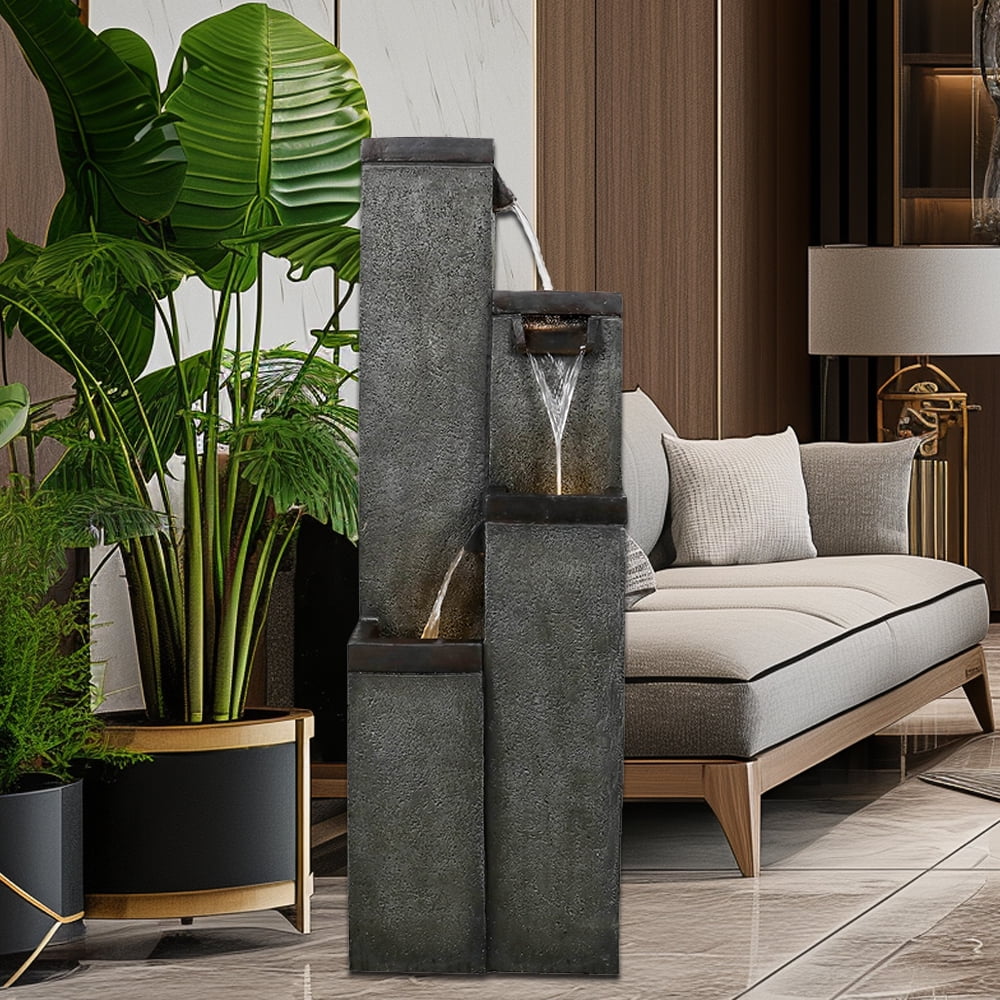 - WEATHER-RESILIENT: Made of durable resin and fiberglass material with a natural look and realistic texture, weatherproof, rustproof and durable. Whether placed indoors or outdoors, the fountains will work for you for a long time.