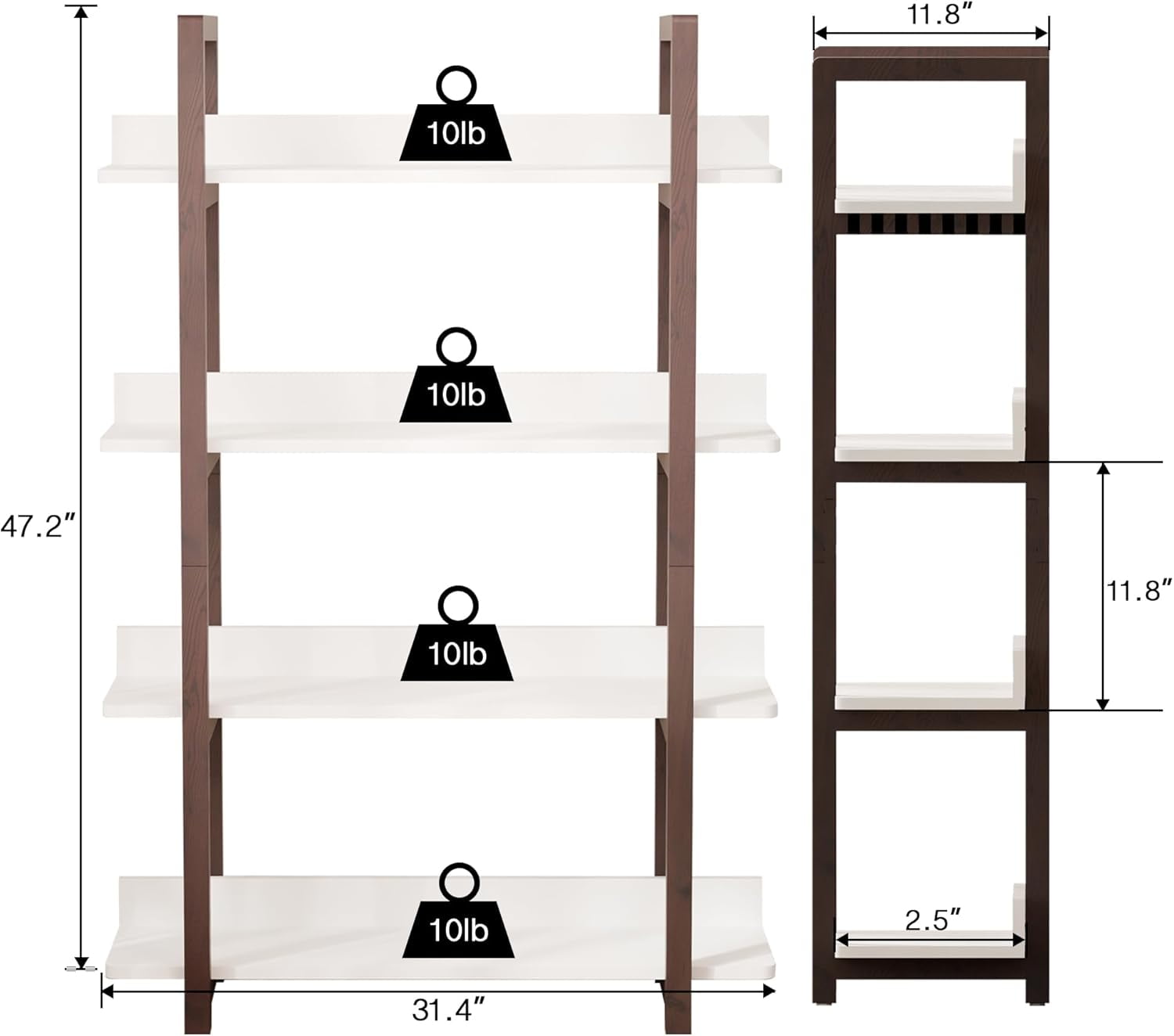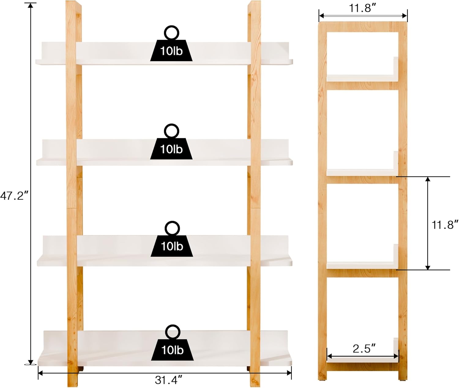 - Bookcase Dimension: 11.8″D x 23.6″W x 47.2″H. Each shelf holds up to 40 lbs and has a height of 11.8